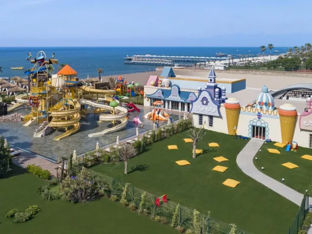 Komplex Titanic Mardan Palace otvorený v roku 2009 a zrekonštruovaný v roku 2019 ponúka 543 izieb rozložených v hlavnej budove a dvoch poschodových vilkách. V areáli o rozlohe 137 000 m² sa nachádza rozsiahle vybavenie, vrátane 8 á la carte reštaurácií, snack baru, 11 barov, SPA centra, a 3 bazénov, vrátane aquaparku a vnútorného bazéna. K dispozícii je tiež golfové ihrisko a detské ihrisko. Wifi pripojenie je dostupné bezplatne na izbách a v areáli hotela.