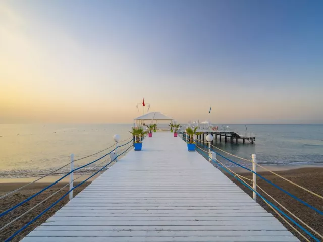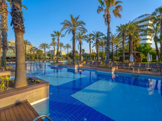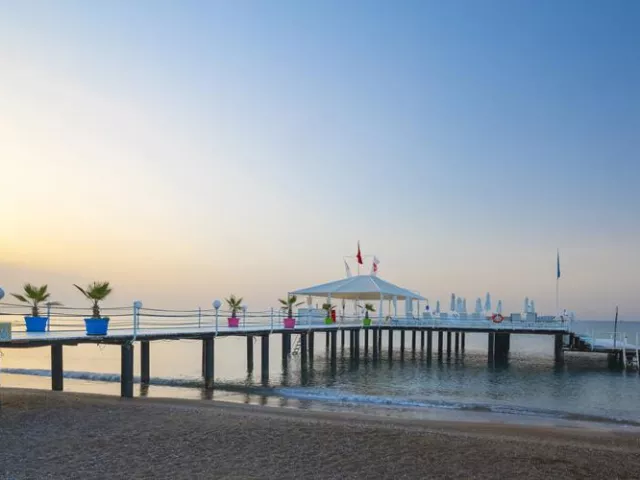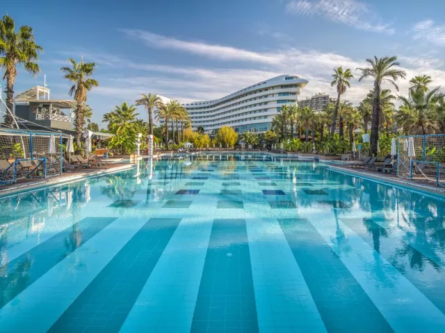 Concorde De Luxe Resort sa nachádza pri krásnej piesočnatej pláži, ktorá získala prestížne označenie Modrá vlajka. Rezort, inšpirovaný slávnym lietadlom typu Concorde, ponúka nekonečnú zábavu a odpočinok pre všetky vekové kategórie. Na rozlohe 62 000 m² sa nachádzajú vnútorné a vonkajšie bazény, vrátane aquaparku so šmykľavkami, 13 barov a niekoľko reštaurácií. Výhodné umiestnenie v blízkosti Antalye umožňuje zladiť relaxáciu s návštevou historických pamiatok.