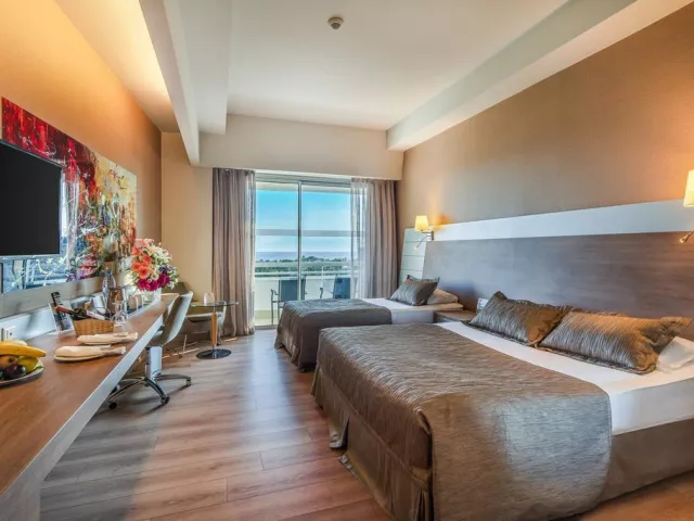 Hotel ponúka široký výber izieb, vrátane dvojlôžkových deluxe izieb, rodinných duplex izieb s výhľadom na more a junior suit. Vybavenie izieb zahŕňa: centrálne ovládanú klimatizáciu, TV so satelitným príjmom, vlastné sociálne zariadenie so sušičom vlasov, telefón, minibar, Wi-Fi (zadarmo), žehličku a balkón.