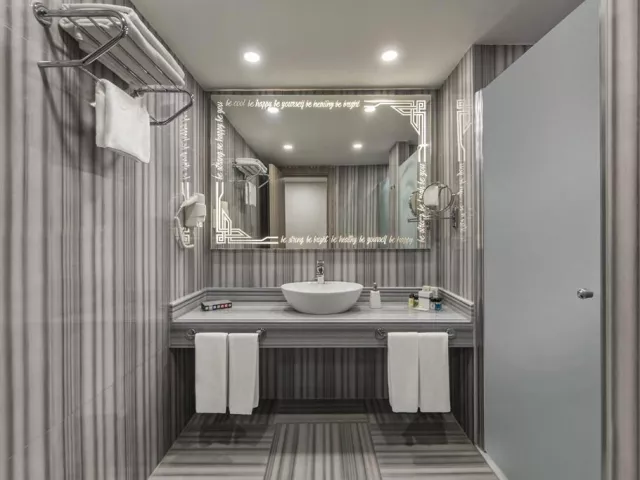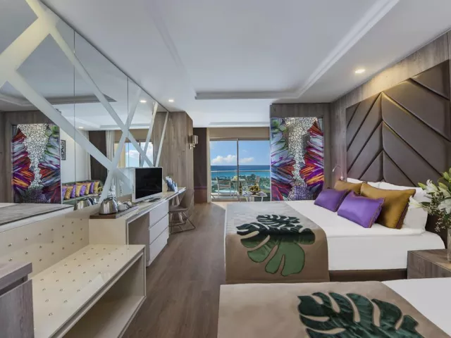 IZBY: 837 izieb • balkón • centrálna klimatizácia • sušič na vlasy • telefón • LCD SAT TV • minibar • trezor • set na prípravu čaju a kávy • rýchlovarná kanvica • wifi • štandardné izby: 35 m², rozkladacie lôžko, s výhľadom na krajinu, more, alebo s bočným výhľadom na more • superior izby: 32 m2 • rodinné izby: 56 m², 2 spálne, rozkladacie lôžko • suity: 123 m2, 2 spálne, 1 obývacia izba