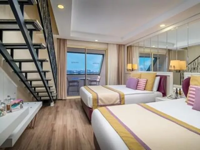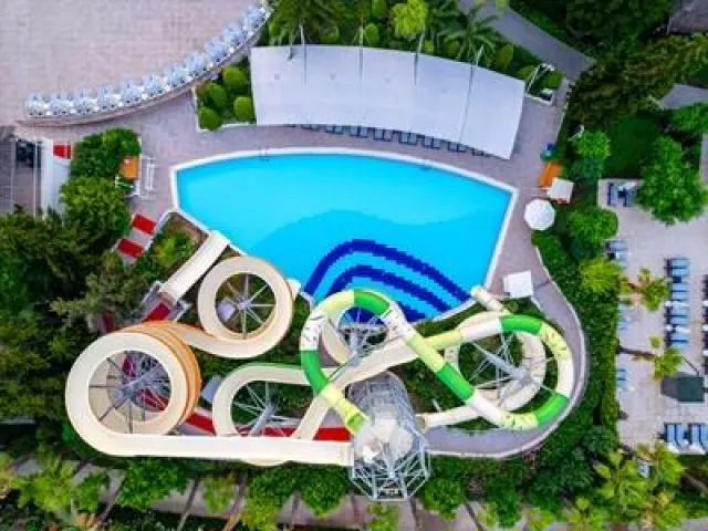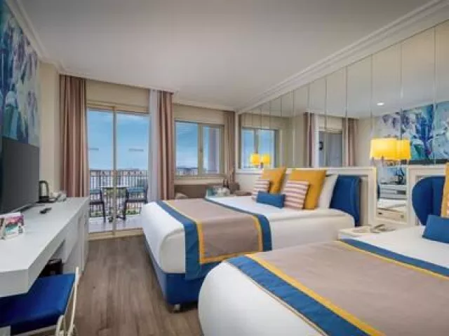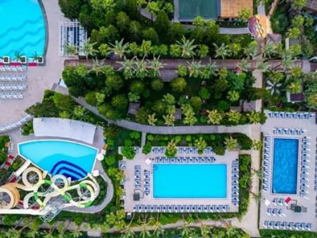 Hotel má modernú vstupnú halu, 475 izieb, 7 á la carte reštaurácií, bary, tri vonkajšie bazény, jeden vnútorný bazén, aquapark s toboganmi, detské bazény, fitness, saunu, turecké kúpele a rôzne animačné programy. WiFi je dostupné v lobby. Za poplatok sú k dispozícii SPA služby, kaderníctvo a rôzne lekárske služby.