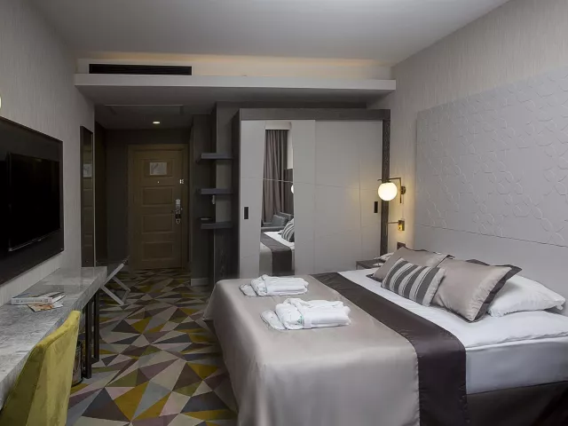 Hotel disponuje 559 izbami s rôznymi typmi ubytovania, vrátane dvojlôžkových izieb, ktoré sú vybavené centrálne ovládanou klimatizáciou, telefónom, TV so satelitným príjmom, trezorom a minibarom (doplňovaný nealkoholickými nápojmi). Izby môžu mať balkón alebo francúzsky balkón a sú vhodné aj pre rodiny s deťmi.