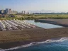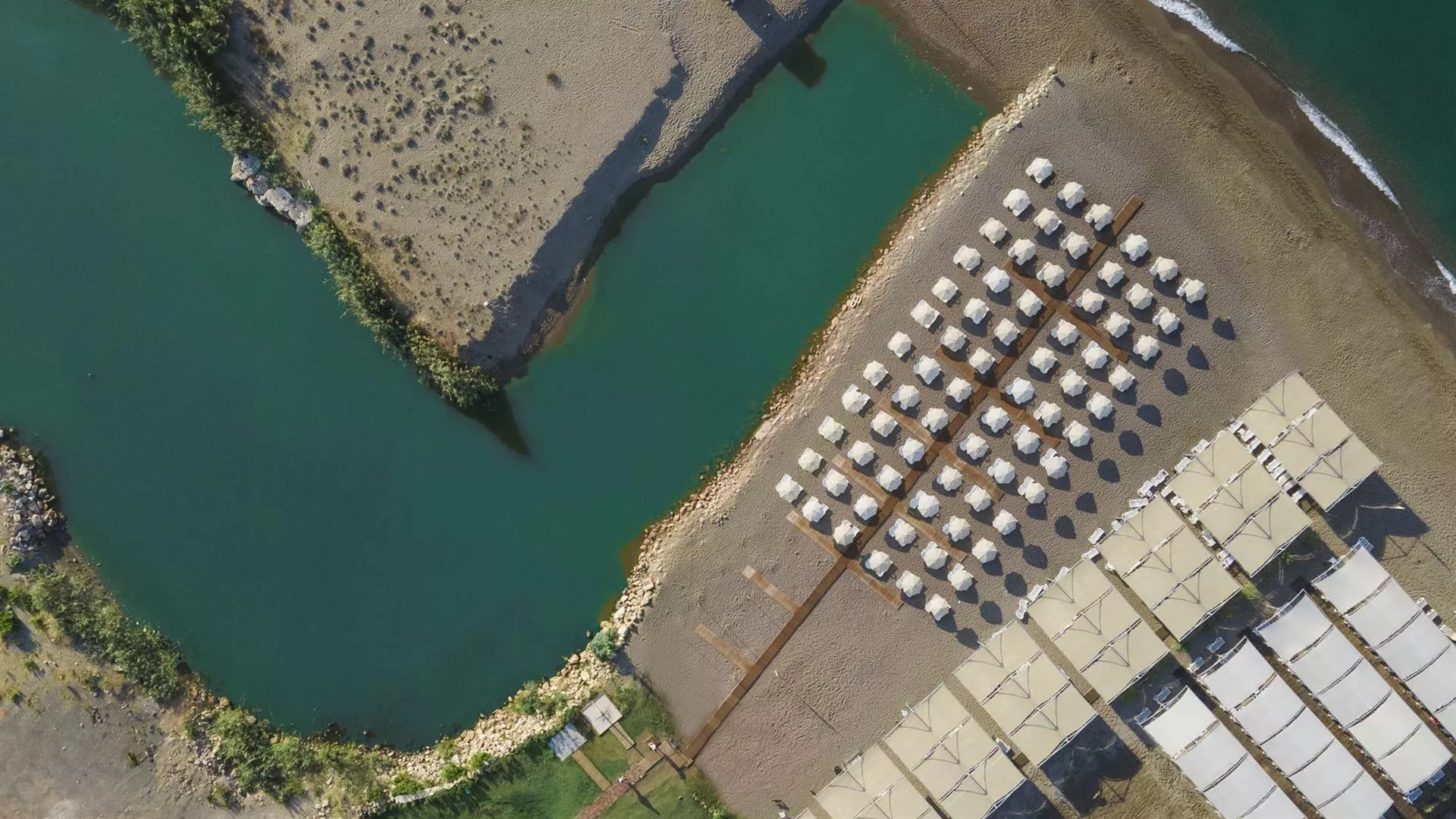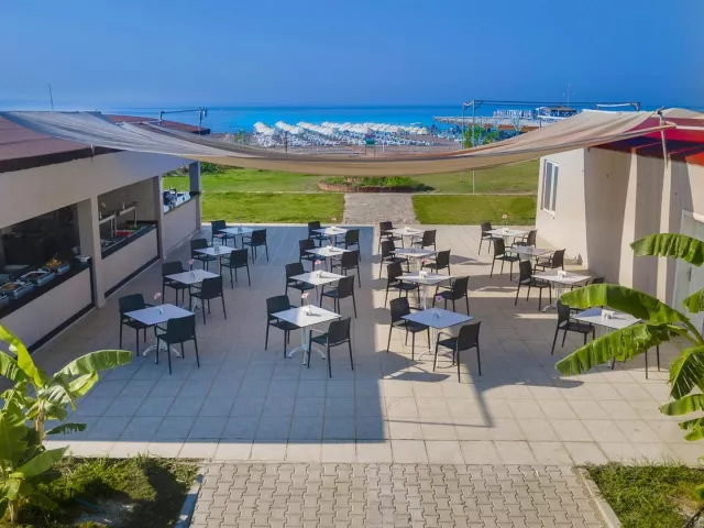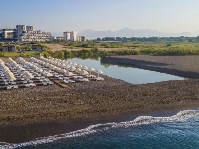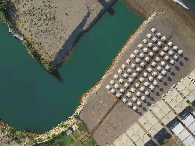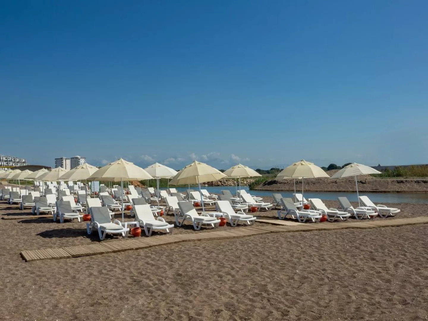 Pláž je piesočnato-kamienková a ponúka ležadlá, slnečníky a osušky zdarma. K dispozícii je aj plážový bar, pričom premáva kyvadlová doprava z hotela na pláž.