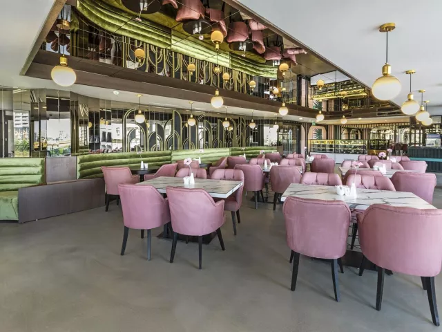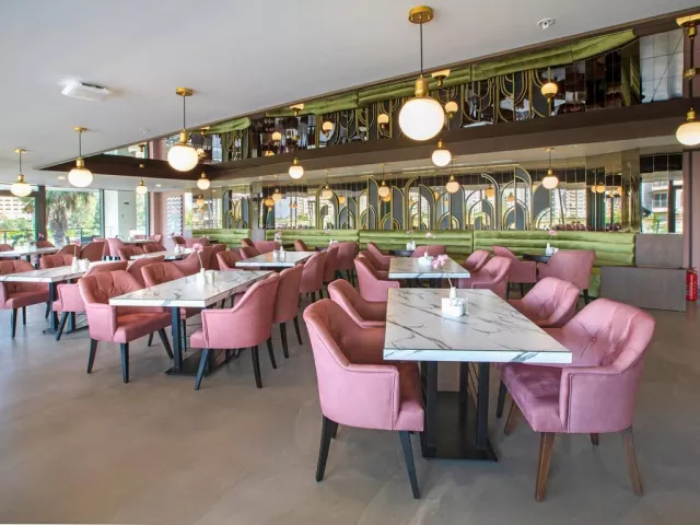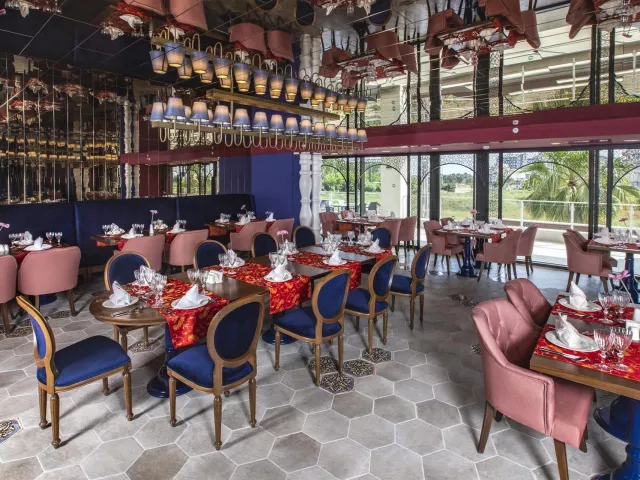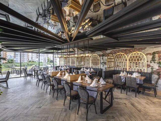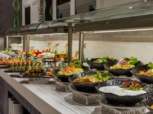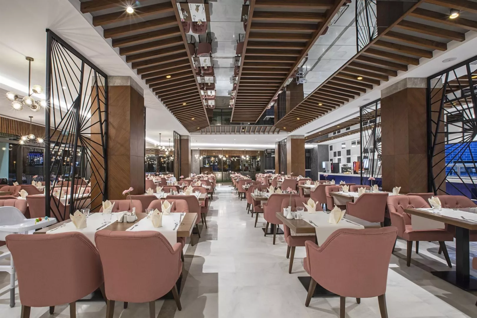 Hotel ponúka all inclusive stravovanie so raňajkami, obedom a večerou formou bufetu. Snack bar a lobby bar sú otvorené počas dňa, pričom v cenovej ponuke sú nealkoholické a vybrané alkoholické nápoje miestnej výroby. Pre hostí sú k dispozícii á la carte reštaurácie (talianska a turecká) s predchádzajúcou rezerváciou.