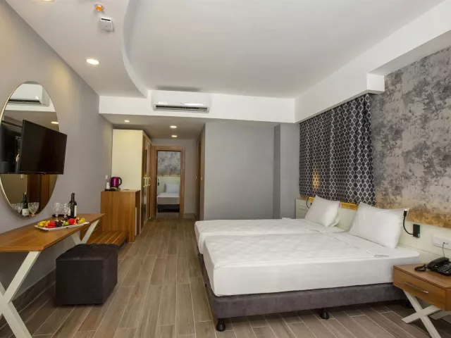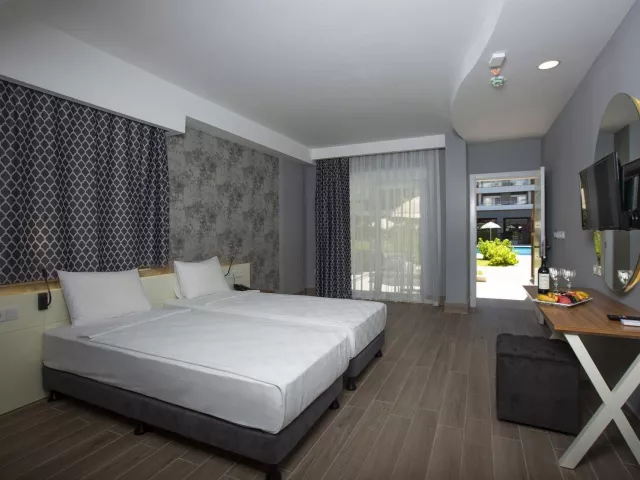 Greenwood Suites Resort, bývalý hotel Sherwood Suites Resort, sa nachádza neďaleko dlhej súkromnej piesočnatej pláže, ktorá ponúka ideálne podmienky na romantické prechádzky. V hoteli je veľkolepé relaxačné centrum, vonkajší a krytý bazén, a tiež turecké kúpele. Pre najmenších sú k dispozícii mini klub a niekoľko vodných šmykľaviek, takže o zábavu je postarané.