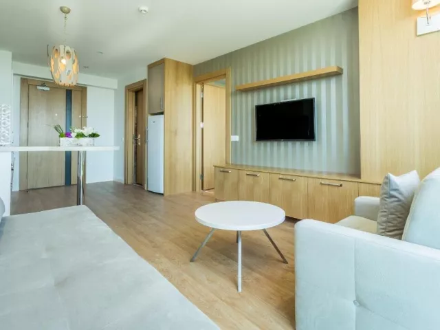 Pieskovo-kamienková pláž je vzdialená 500 m od hotela. K dispozícii je bezplatný shuttle bus, ktorý premáva každých 15 minút od 08:30 do 00:00. Pláž je ocenená Modrou vlajkou a ponúka slnečníky, ležadlá a plážové osušky zdarma. Pavilóny sú za príplatok.