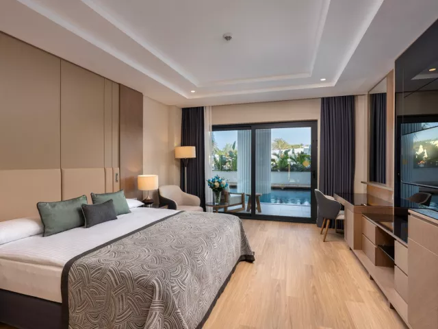 Hotel ponúka rôzne typy ubytovania, vrátane štandardných izieb, rodinných izieb a rodinnej suity. Štandardné izby majú rozlohu 28-34 m², rodinné izby 56-68 m² a rodinné suity 80 m², pričom každá z nich je vybavená rôznymi komfortnými prvkami.