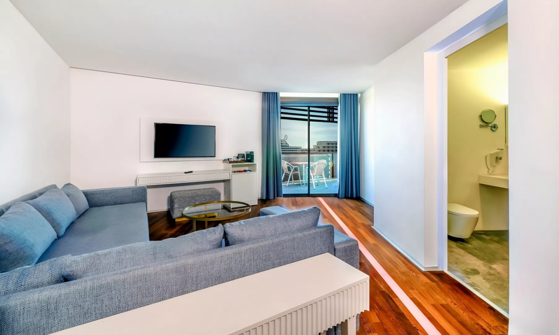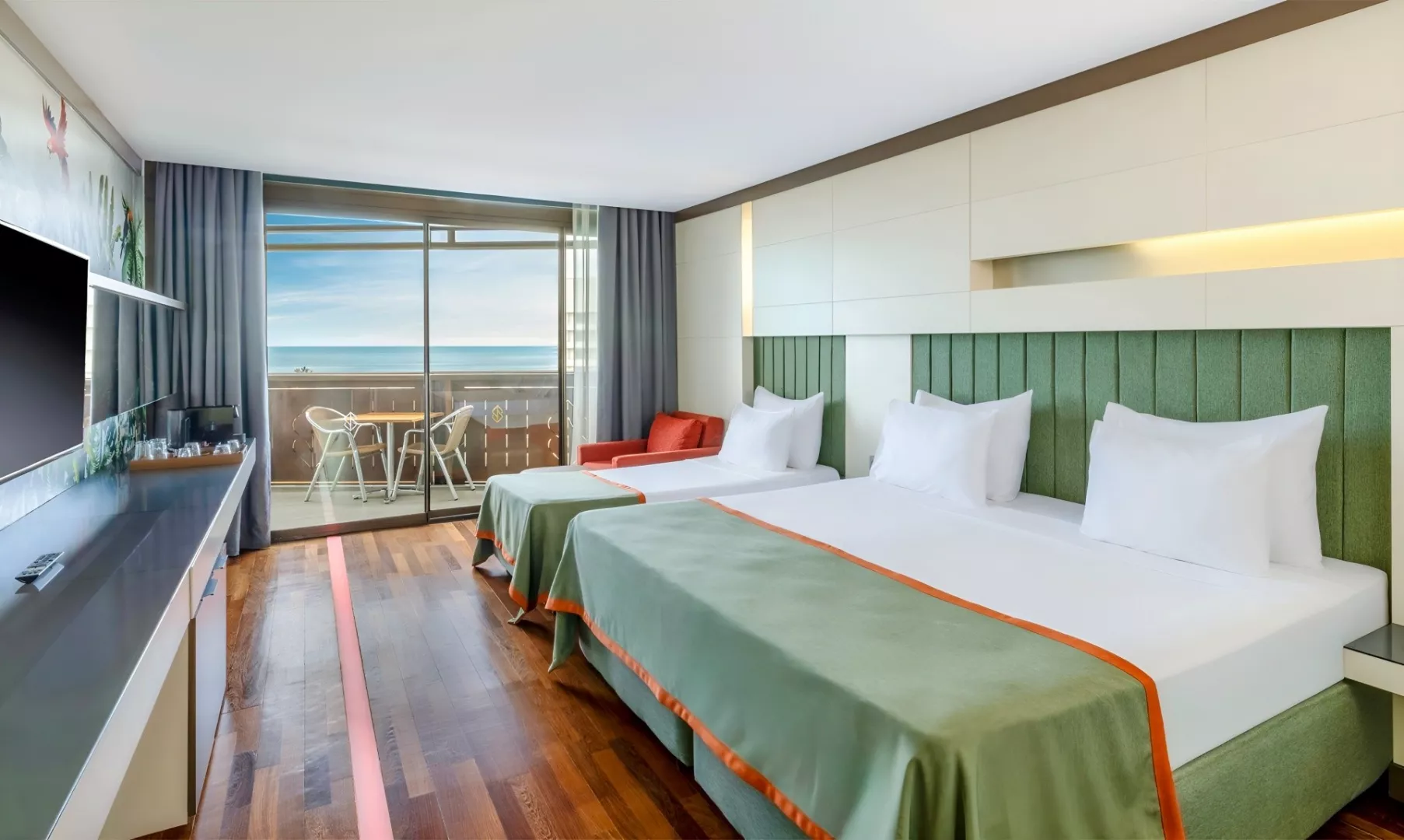 Nirvana Cosmopolitan ponúka 717 izieb, vrátane dvoch typov rodinných suit: 56 m² a 64 m² s výhľadom na more. Vybavenie izieb zahŕňa klimatizáciu, LED TV, minibar, trezor, Wi-Fi a balkón. Rodinné suity kombinujú spálňu s obývacou izbou a majú dve kúpeľne.