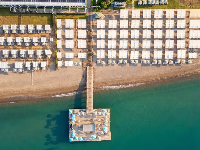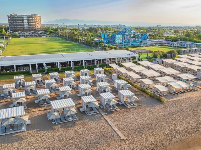 Hotelová pláž je piesočnatá, s drobným výskytom okruhliakov. Poskytuje ležadlá, slnečníky a plážové osušky zdarma, ako aj bar na móle a pavilóny na pláži (za poplatok).
