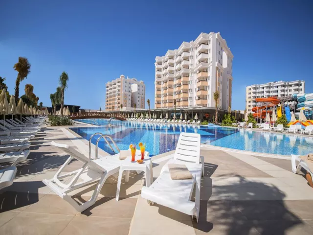 SLUŽBY: bazén so slnečníkmi a ležadlami • vnútorný bazén • tobogany • hlavná reštaurácia • bary (lobby, pool, snack) • cukráreň • denný a večerný animačný program • fitness • tenisový kurt • basketbalové ihrisko • biliard • stolný tenis • šípky • pinball • šach • plážový volejbal • turecký kúpeľ • sauna • parný kúpeľ • wifi • za poplatok: Spa centrum • procedúry tureckého kúpeľa • jacuzzi • masáž • salón krásy • kaderníctvo • obchody • práčovňa • lekárska služba • osvetlenie tenisového kurtu • konferenčná miestnosť