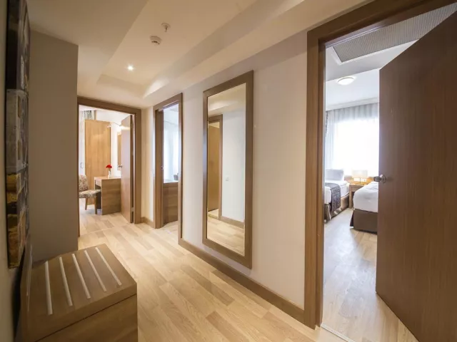 IZBY: 396 izieb • balkón • centrálna klimatizácia • sušič na vlasy • telefón • SAT TV • minibar (denne dopĺňaný nealkoholickými nápojmi a vodou) • set na prípravu kávy a čaju • trezor • papuče • wifi • štandardné izby: 26 m², max. pre 2 osoby • superior izby: 28 m², max. pre 3+1 alebo 2+2 osoby, rozkladacie lôžko • rodinné suity: 68 m², max. pre 5+1 alebo 4+2 osoby, 2 spálne a 1 obývacia izba
