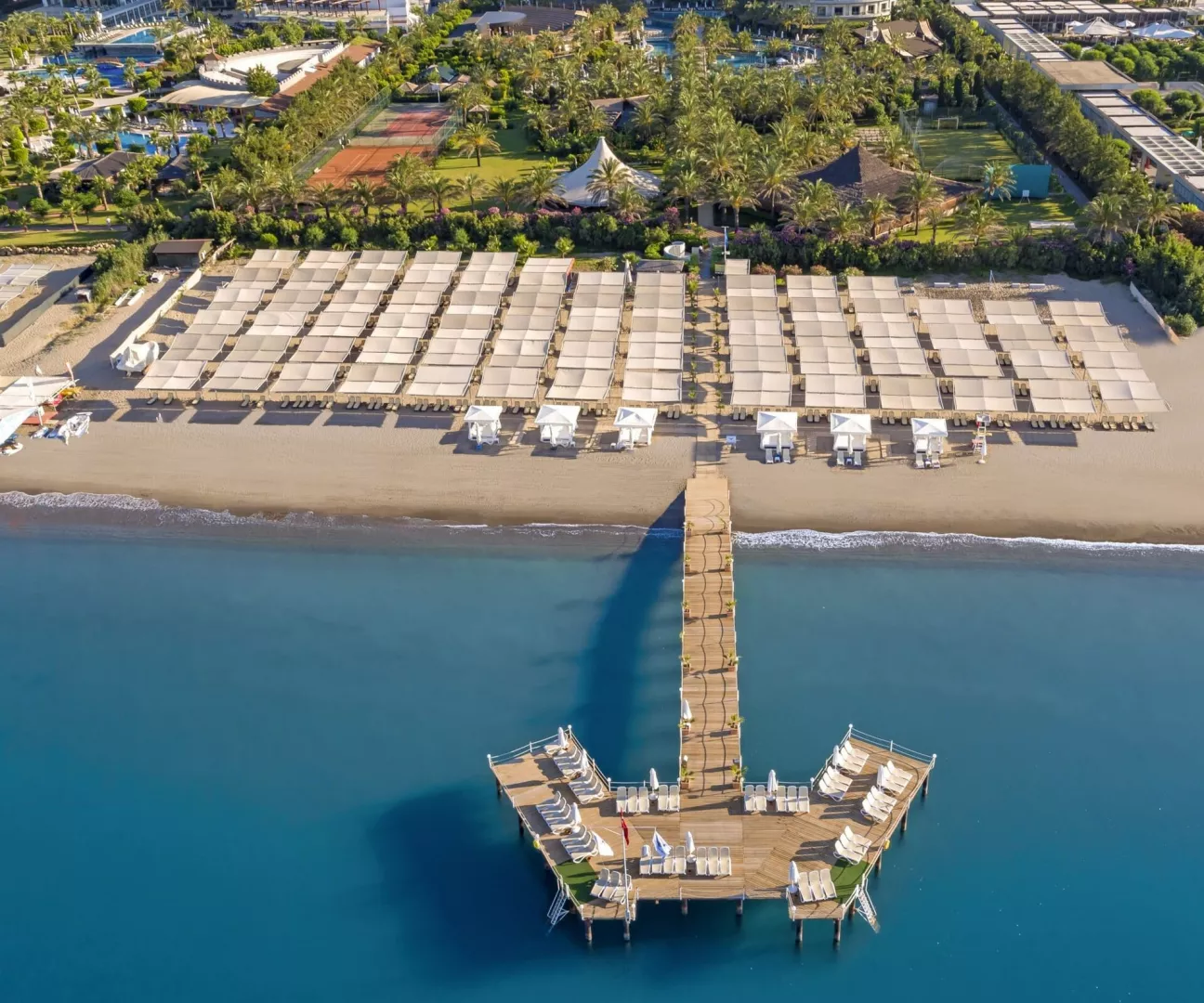 Royal Wings má modernú architektúru a je obklopený prekrásnou záhradou. Hotelový komplex sa rozprestiera na ploche 72 000 m² a zahŕňa 10-poschodovú budovu s 457 izbami. K dispozícii sú aj štyri reštaurácie à la carte a rôzne bary. Ponúka rozsiahly bazénový komplex vrátane aquaparku a mini lunaparku. V hoteli sa nachádzajú aj animačné programy pre deti i dospelých a možnosti na relaxáciu v SPA a wellness centre.
