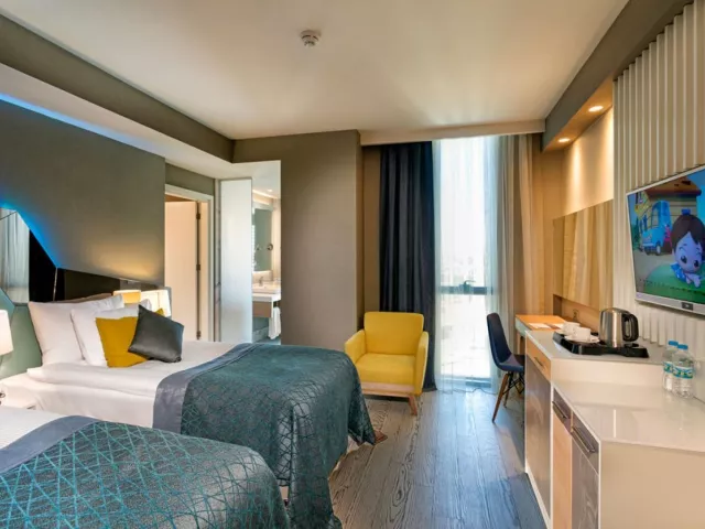 Hotel ponúka 275 komfortne zariadených izieb, ktoré sú vybavené klimatizáciou, minibarom, TV, trezorom a wifi. Izby majú rôzne veľkosti a niektoré sú znevýhodnené polohou či veľkosťou. Každá izba má sprchu, kúpeľňové doplnky a papuče. Upratovanie izieb prebieha denne.