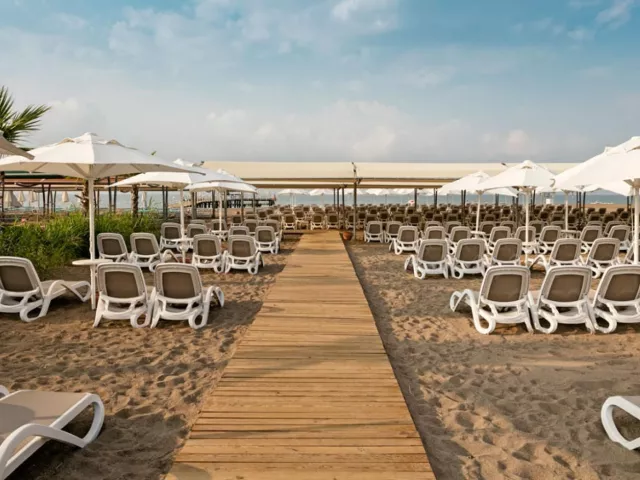 Súkromná piesočnatá pláž sa nachádza 750 m od hotela. Každých 30 minút premáva bezplatná kyvadlová doprava na pláž. K dispozícii sú slnečníky, ležadlá a plážové osušky zdarma. Na pláži sa nachádza aj bar, kde sa podávajú nápoje a občerstvenie.