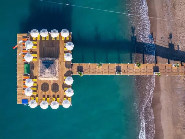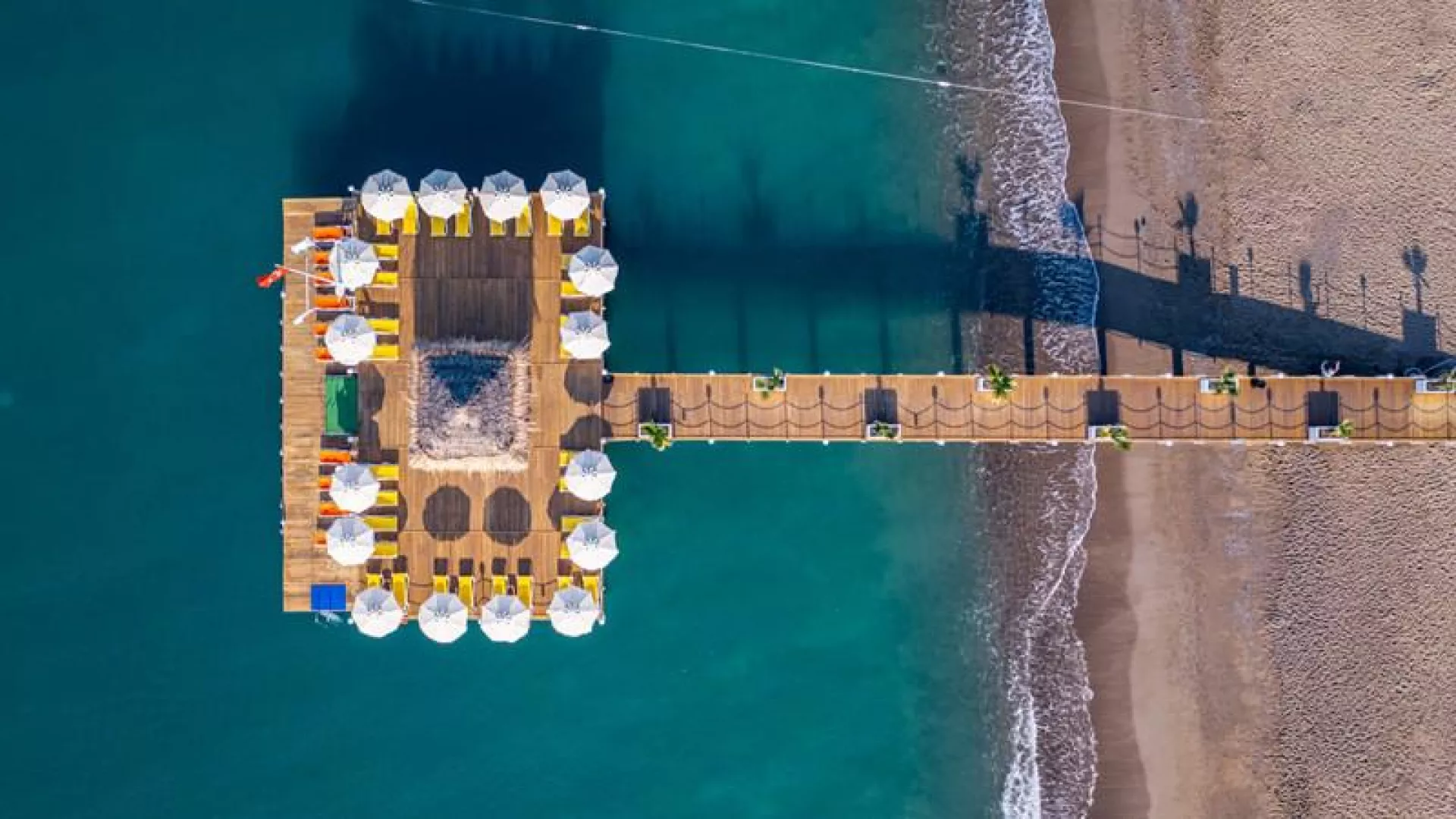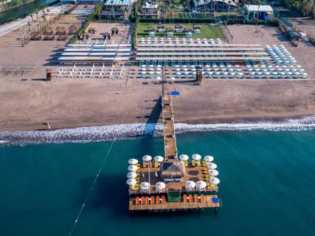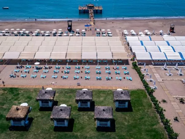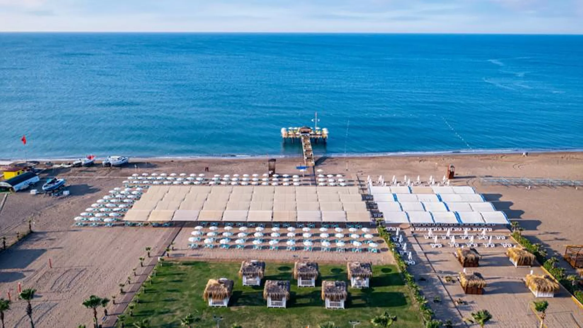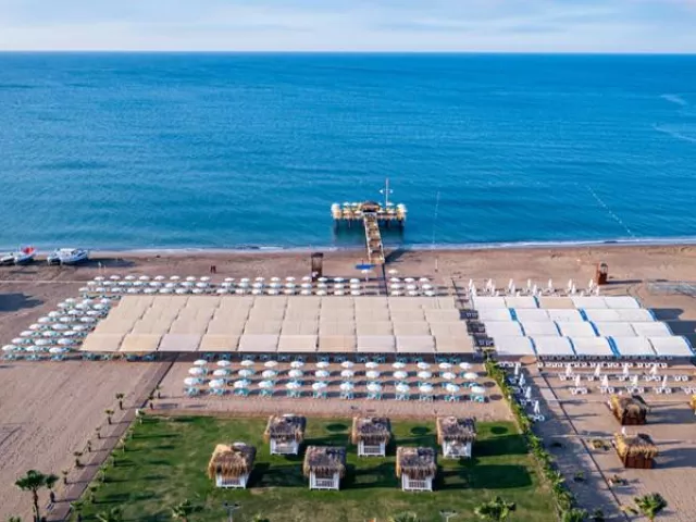 Vlastná piesočnatá pláž je vzdialená 330 m od hotela a je vybavená pavilónmi za poplatok. Hotel zabezpečuje bezplatnú kyvadlovú dopravu na pláž každých 15 minút. K dispozícii sú ležadlá, slnečníky a plážové osušky bez poplatku.