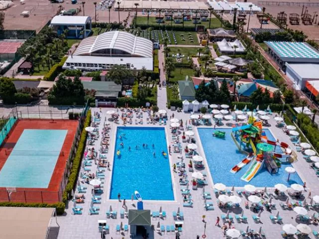 Hotel ponúka vonkajšie a kryté bazény, tobogany, wellness služby, fitness centrum a rôzne športové aktivity, ako sú tenis a basketbal. Animačné programy a živá hudba zabezpečujú zábavu počas dňa aj večera. Za poplatok sú dostupné SPA procedúry, masáže a ďalšie služby.