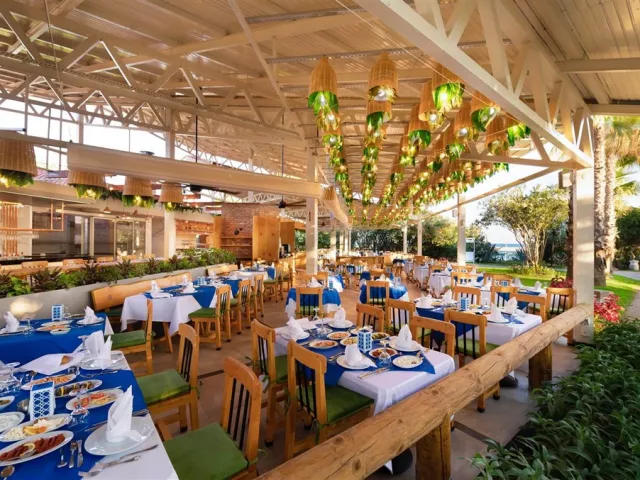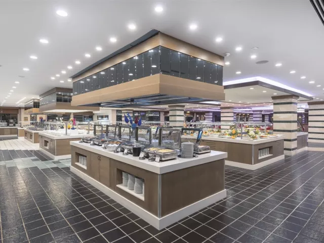 Hotel poskytuje stravovanie formou ULTRA ALL INCLUSIVE, ktoré zahŕňa raňajky, neskoré raňajky, obedy a večere formou švédskych stolov vrátane nápojov. K dispozícii sú detské menu, miestne nealkoholické a alkoholické nápoje, a tiež vybrané prémiové importované alkoholické nápoje. Počas dňa je podávané bohaté občerstvenie a snacky, ako aj špeciálne ponuky ako turecké placky a zmrzlina.