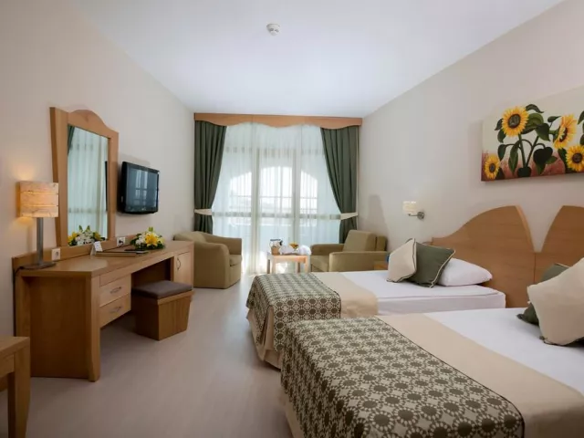 Areál hotela sa skladá z hlavnej budovy a farebných bungalovov, ktoré sú umiestnené v udržiavanej zelenej záhrade. K dispozícii sú moderné zariadenia vrátane vstupnej haly s recepciou, hlavnej reštaurácie a viacerých à la carte reštaurácií (talianska, turecká, barbecue a ďaleký východ). Súčasťou sú aj bary, cukráreň, vnútorný aj vonkajší bazén, detský bazén a bazén so šmykľavkami.
