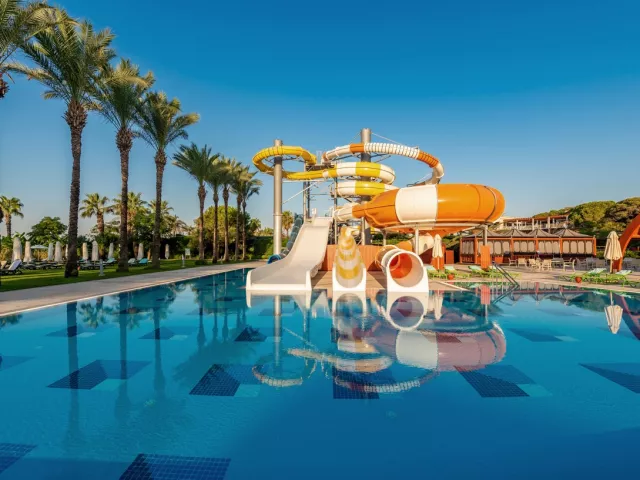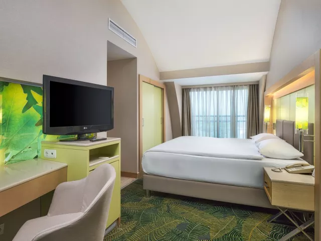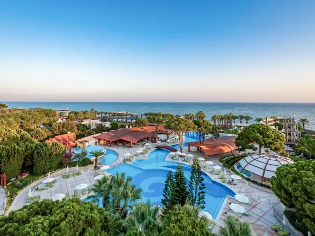 klimatizácia • trezor • Smart TV so satelitom • telefón • balkón • kanvica • set na prípravu kávy a čaju • minibar (alko aj nealko, denne dopĺňané) • WiFi • sprchový kút • sušič na vlasy REŠTAURÁCIE A BARY a la carte reštaurácie: Daphne (turecká reštaurácia), Florian (talianska), Hedera (medzinárodná), Tai-Pen (ďaleký východ), Sofa (francúzska) • bary: Harmonia, Olea, Citrus, Nelia, plážový bar, Hedera, Celestine, Daphne *a la carte reštaurácie potrebné rezervovať vopred SLUŽBY platené: požičovňa áut, doktor, kaderník, práčovňa BAZÉNY vnútorný bazén • vnútorný detský bazén • hlavný bazén • detský bazén • relax bazén • aktivity bazén • bazén so šmýkačkami WELLNESS vnútorný bazén • sauna • turecké kúpele • relax miestnosť • jacuzzi • za extra poplatok: masáže, skin care, body treatment, capsule treatment, doktor ŠPORT A AKTIVITY fitness • tenis • plážový volejbal • šípky • shuffleboard • boccia • stolný tenis • bowling • gymnastika • pilates • aerobik • zumba • vodné športy (za poplatok) • vodné pólo • vodný volejbal • vodná gymnastika • biliard • backgammon • rummikub • playstation • šach • karty • večerné shows • párty • živá hudba