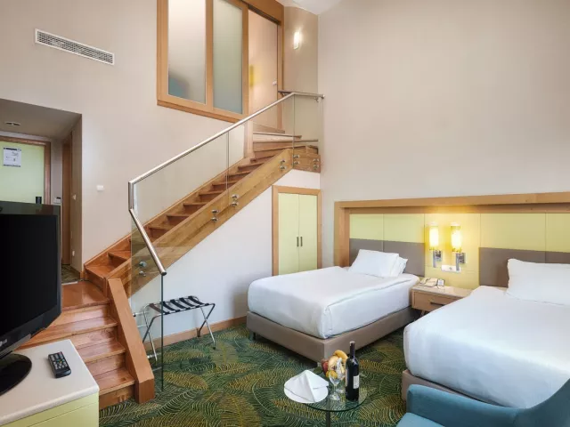 klimatizácia • Wi-Fi • kúpeľňa s WC • sušič vlasov • telefón • TV • kanvica, kávový a čajový set • minibar (nealko a pivo)• papuče a župan • balkón alebo terasa *Set pre bábätká možný na vyžiadanie so zálohou (0-4r.) ohrievač fliaš, detská vanička, detská postieľka, monitor, sterilizátor fliaš a kočík TYPY UBYTOVANIA Izba Štandard (35-40 m2, maximálna kapacita 3/2+1, výhľad na krajinu/bočný výhľad na more/výhľad na more, jednolôžková posteľ, manželská posteľ, balkón) Izba Štandard so záhradou (35-40 m2, maximálna kapacita 3/2+1/2+2, jednolôžková posteľ, manželská posteľ, balkón) Rodinná izba (55 m2, maximálna kapacita 4, bočný výhľad na more, jednolôžková posteľ, manželská posteľ) Junior suita (50 m2, maximálna kapacita 3/2+1, vedľajšia budova, výhľad na bazén, priamy vstup k bazénu, manželská posteľ, gauč, balkón a terasa)