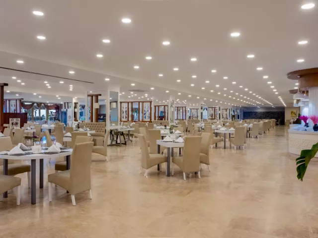 Koncept „all inclusive“ je k dispozícii 24 hodín denne a zahŕňa raňajky, obedy a večere formou bufetu v hlavnej reštaurácii, s možnosťou zakúpenia služieb v à la carte reštauráciách, pričom niektoré miestne nápoje sú zahrnuté v cene.