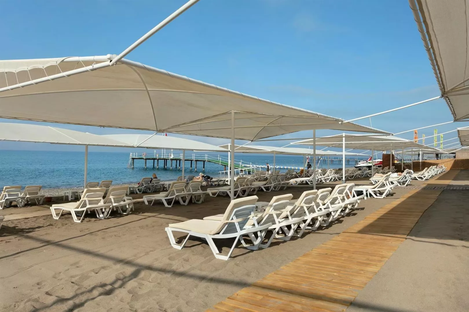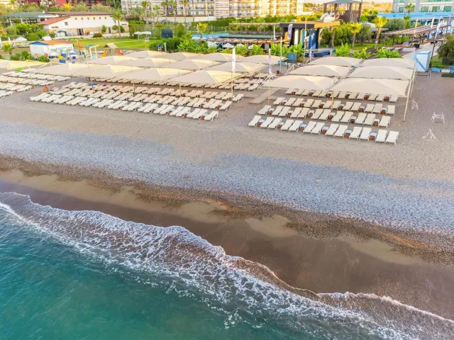 Hotel sa nachádza priamo na súkromnej piesočnato-kamienkovej pláži. K dispozícii je mólo a plážový servis s lehátkami, slnečníkmi a osušky zdarma.