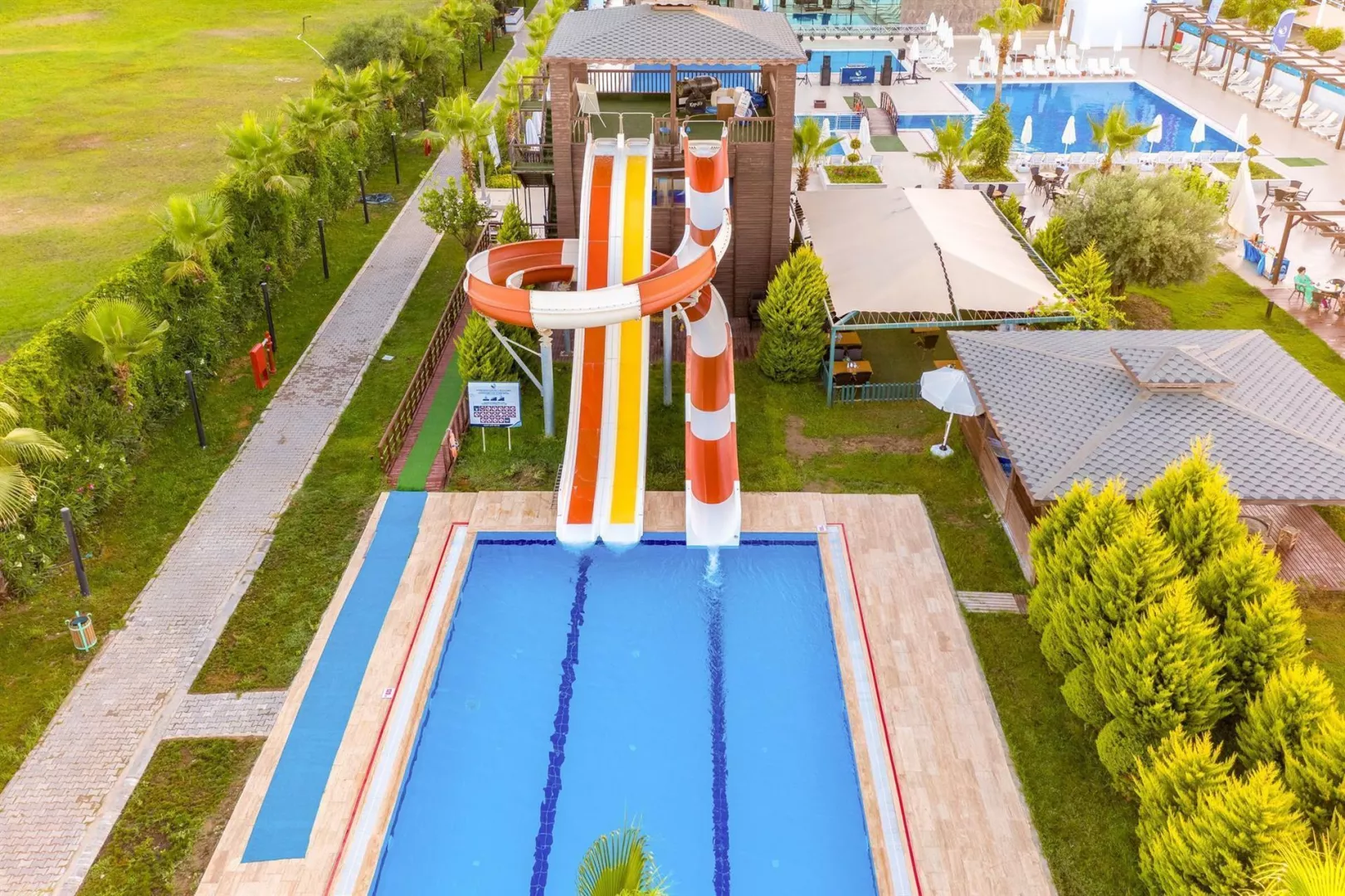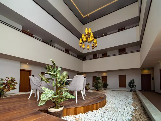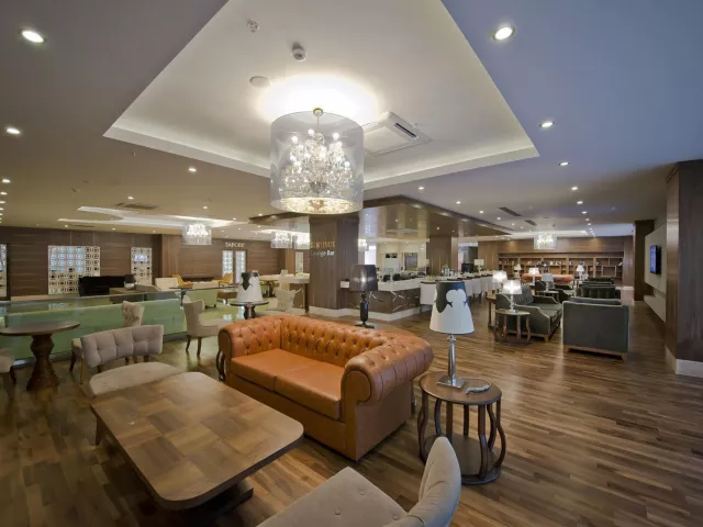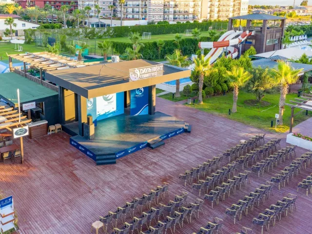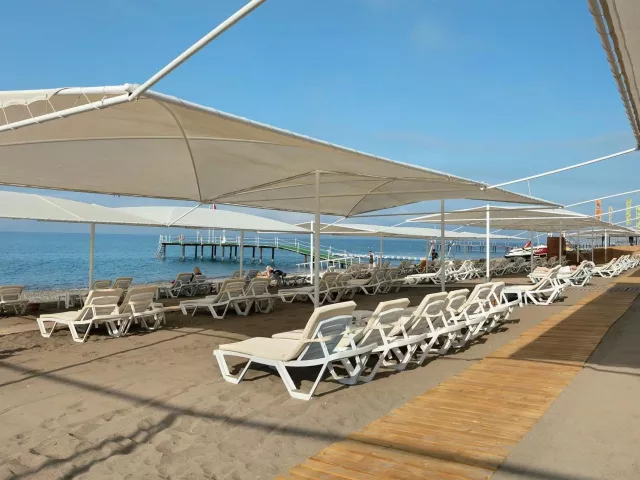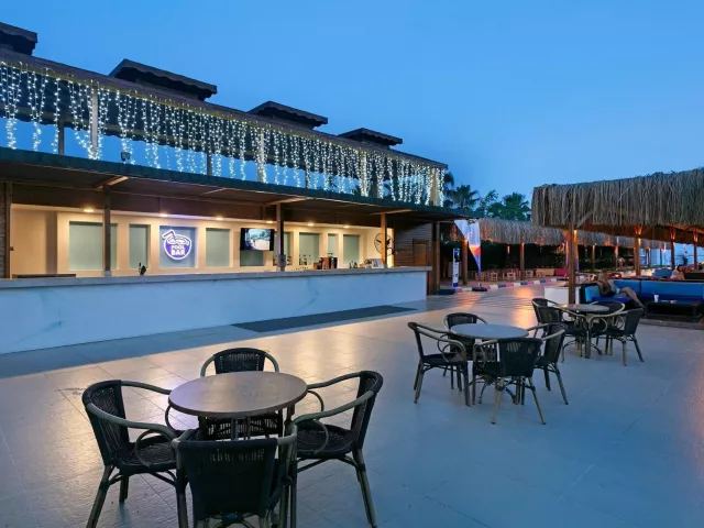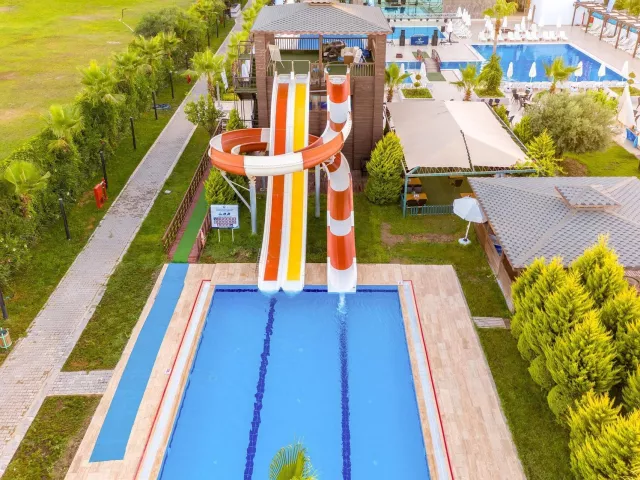 Hotel má 5-poschodovú budovu s 230 izbami. K dispozícii je recepcia, lobby s WiFi, hlavná reštaurácia, 2 á la carte reštaurácie (rybia a turecká), rôzne bary, vonkajší a vnútorný bazén, detský bazén, bazén s toboganmi a fitness centrum. Zábavné aktivity ako denné a večerné animácie, miniklub, detská diskotéka, joga a pilates sú súčasťou ponuky.