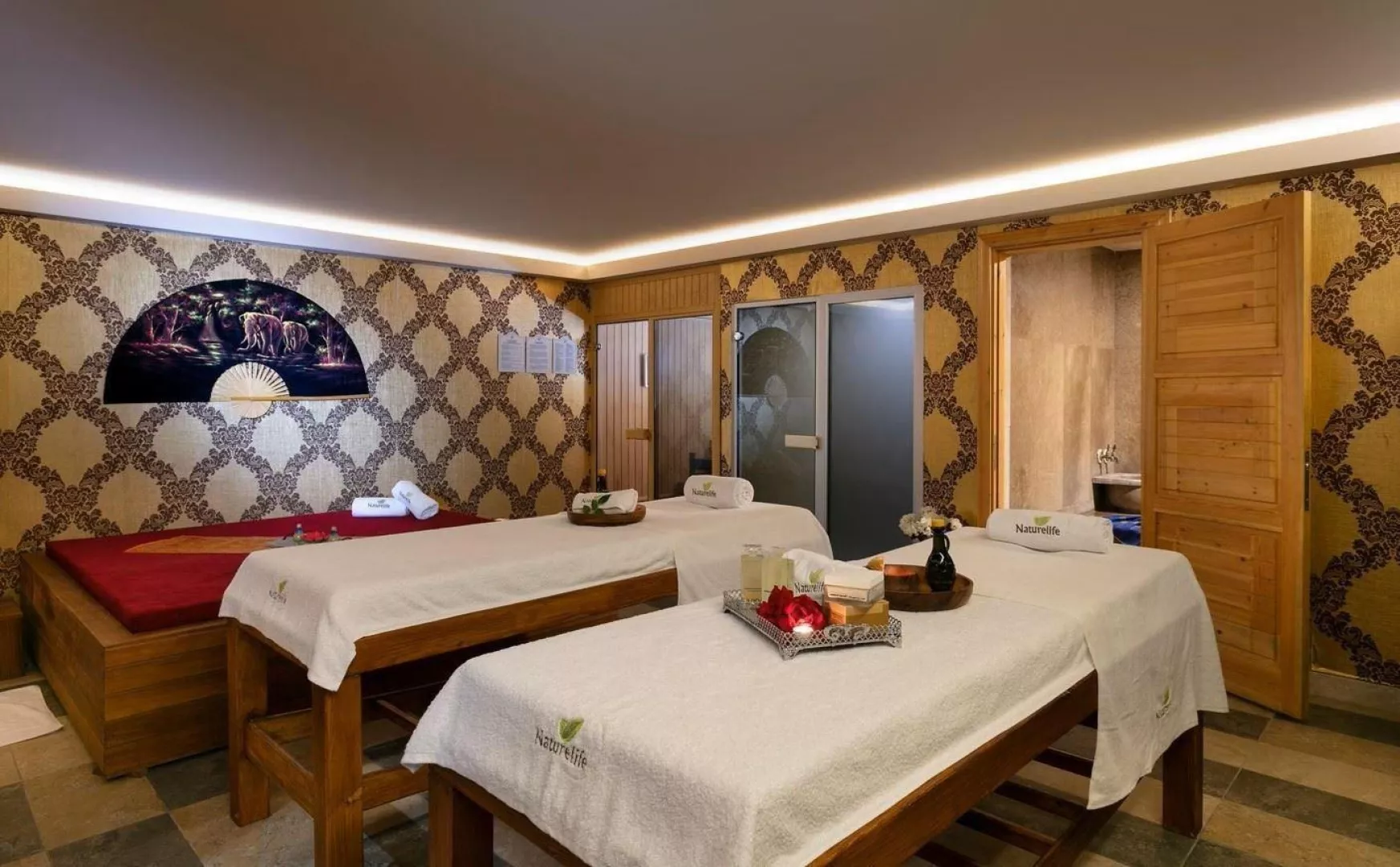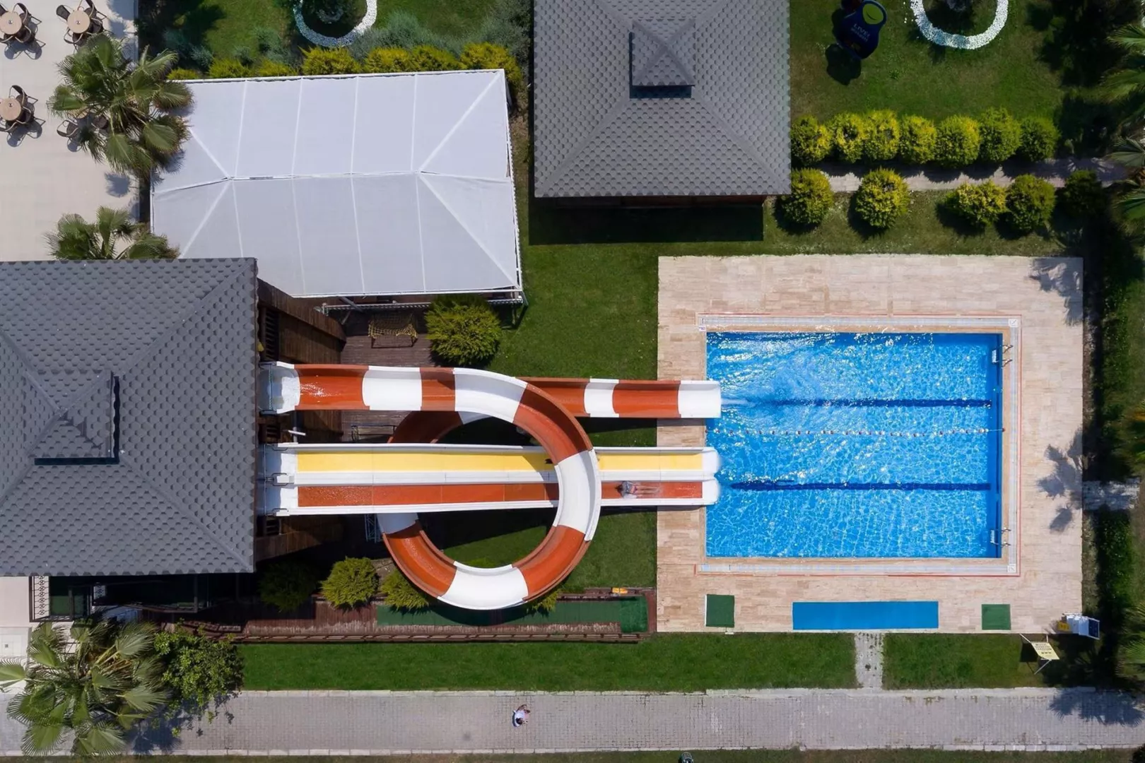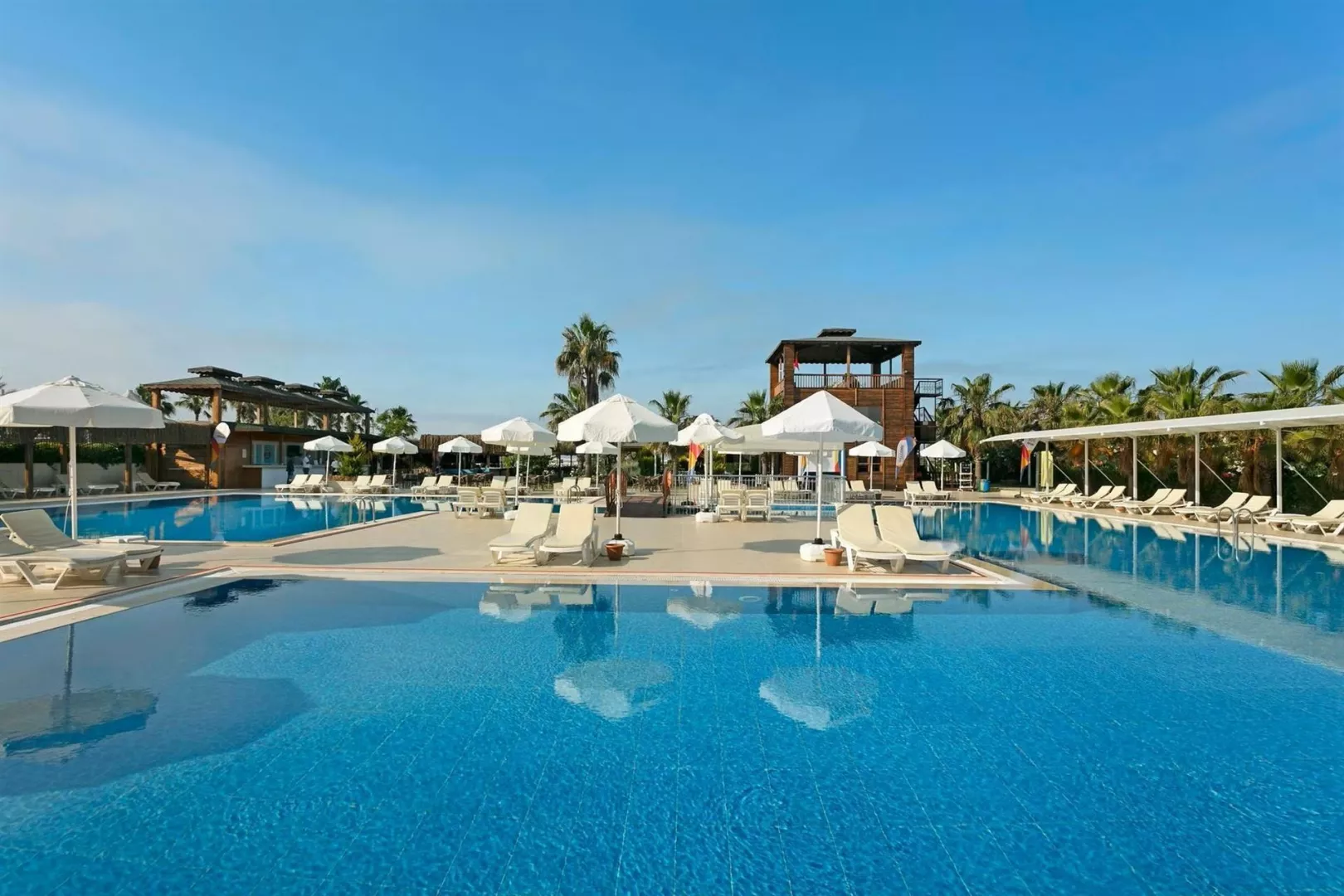 Hotel má 5-poschodovú budovu s 230 izbami. K dispozícii je recepcia, lobby s WiFi, hlavná reštaurácia, 2 á la carte reštaurácie (rybia a turecká), rôzne bary, vonkajší a vnútorný bazén, detský bazén, bazén s toboganmi a fitness centrum. Zábavné aktivity ako denné a večerné animácie, miniklub, detská diskotéka, joga a pilates sú súčasťou ponuky.