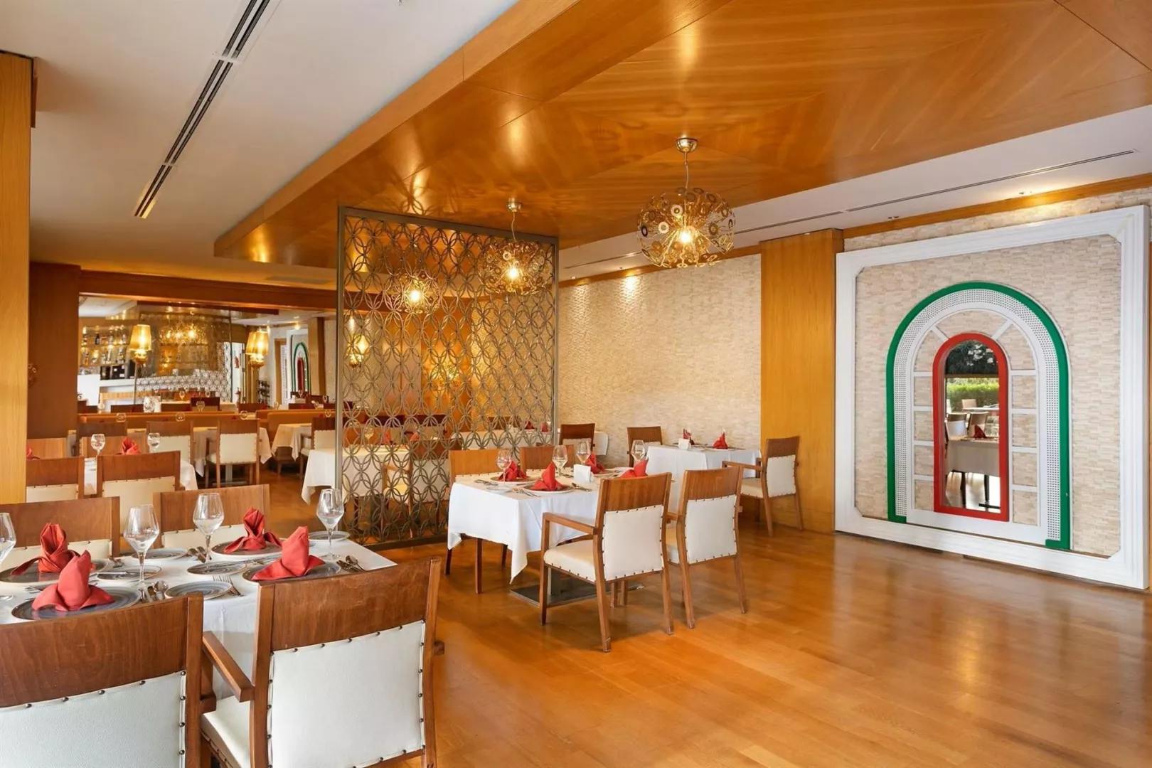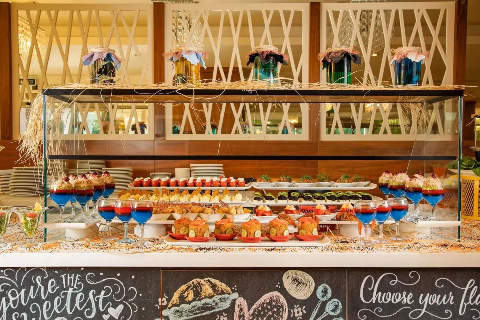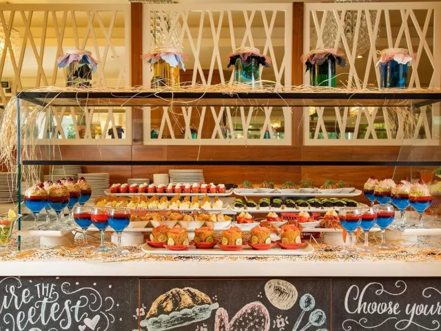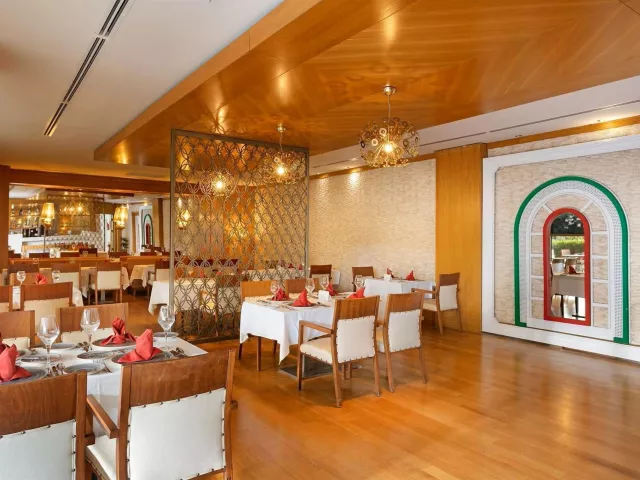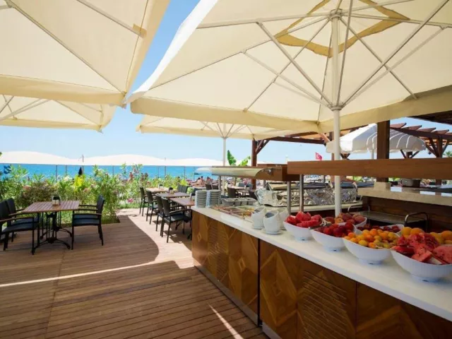 Ultra all inclusive stravovanie formou bufetu zahŕňa raňajky, obedy, večere a nočné občerstvenie. Rôzne snacky, gozleme a zmrzlina sú dostupné v určených časoch. Možnosť navštíviť á la carte reštauráciu raz počas pobytu na 7 nocí.