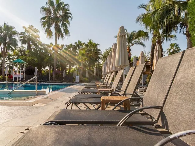 Hotelový komplex pozostáva z hlavnej budovy a niekoľkých päťposchodových blokov situovaných v upravenej záhrade. Vstupná hala s recepciou, dva lobby bary, hlavná reštaurácia s vonkajšou terasou, snack bar, a tri à la carte reštaurácie (talianska, rybia a turecká - za poplatok) sú k dispozícii. V komplexe sú aj obchodíky so suvenírmi, konferenčná miestnosť, kaderníctvo, kozmetické služby, a vonkajšie bazény, vrátane bazéna s tobogánmi a detského bazénu. Pre deti je k dispozícii lunapark a herňa.