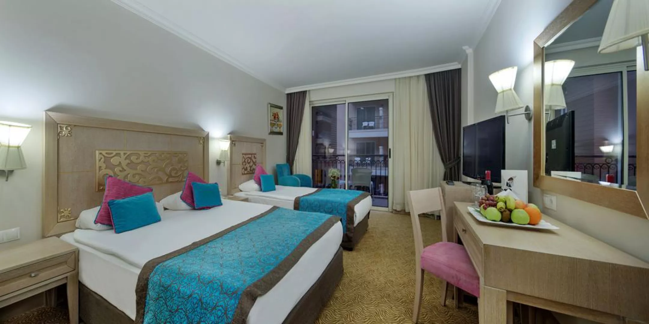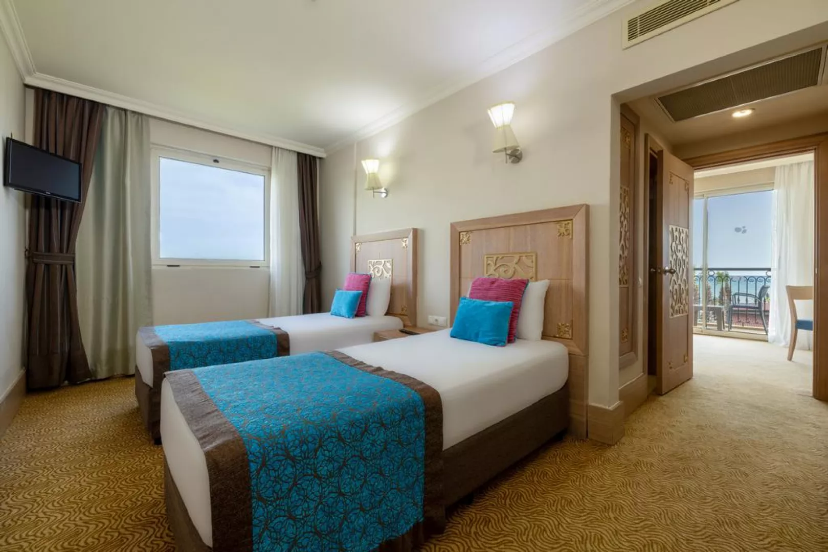 Hotel ponúka celkovo 372 izieb rôznych typov, vrátane štandardných izieb a rodinných apartmánov. Všetky izby sú vybavené balkónom, centrálnou klimatizáciou, minibarom (denne dopĺňaným nealkoholickými nápojmi), TV, elektronickým trezorom a Wi-Fi pripojením. Izby sú upratované denne a posteľná bielizeň sa mení trikrát týždenne.