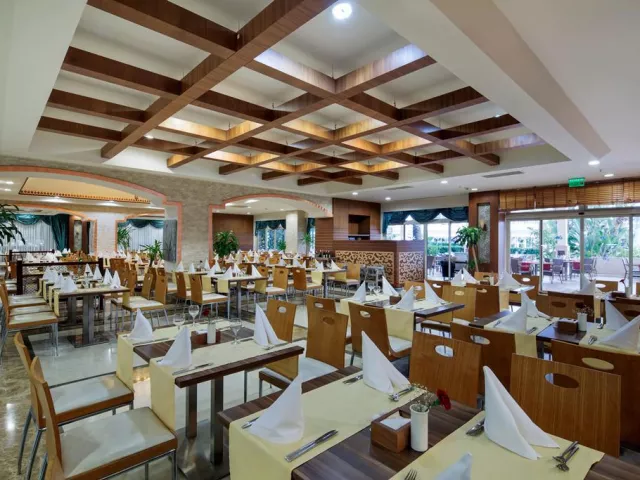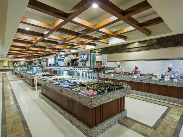 Hotel ponúka koncept ultimate all inclusive so službami ako raňajky, obed a večera formou bufetu. K dispozícii sú aj vegetariánske a diétne menu, občerstvenie a dezerty počas celého dňa. V reštauráciách à la carte si máte možnosť vychutnať taliansku, mexickú a tureckú kuchyňu, pričom jedna návšteva reštaurácie je bez poplatku.