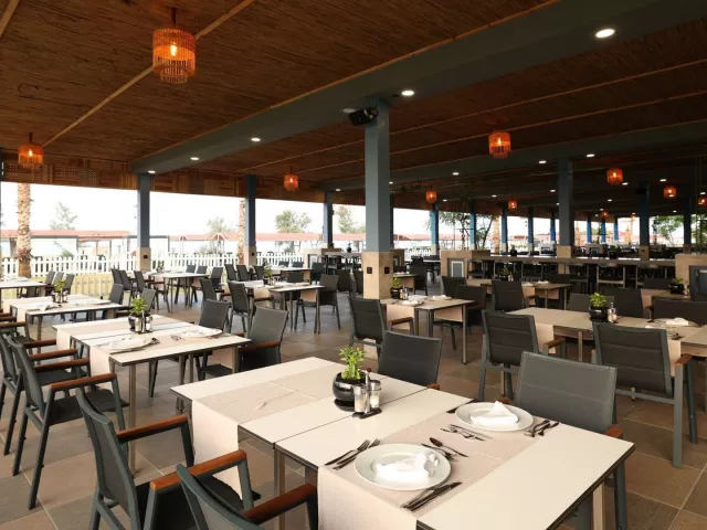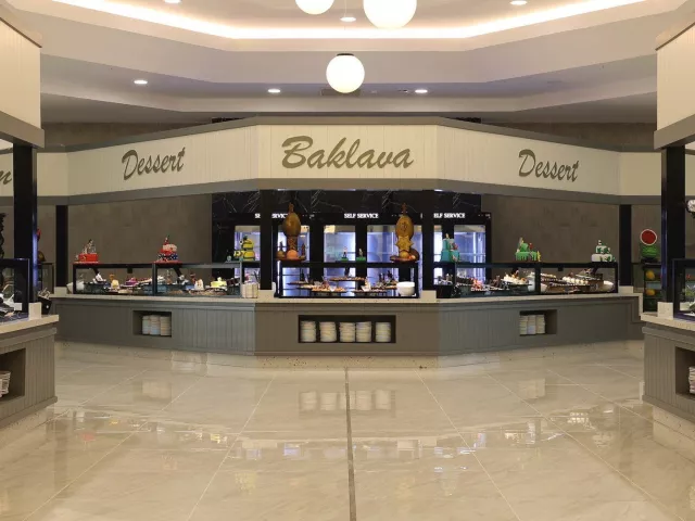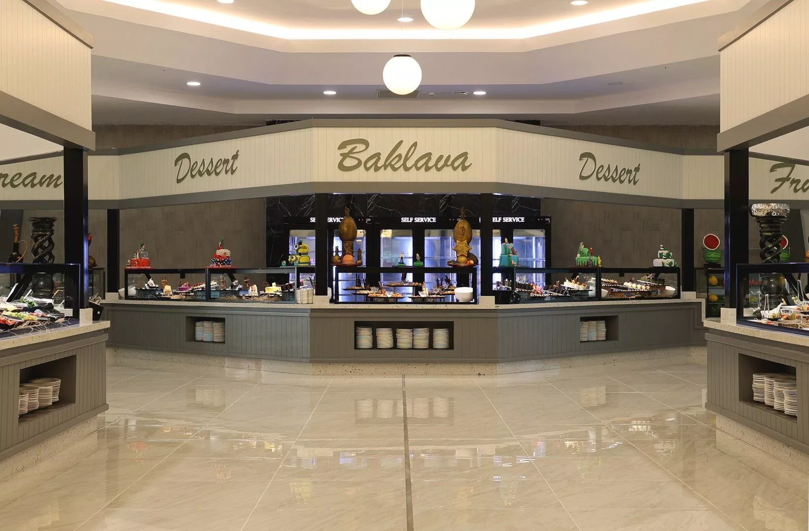 Hotel ponúka 24-hodinový program ultimate all inclusive formou bufetu. Raňajky sú podávané od 07:00 do 11:00, obedy od 12:30 do 14:30 a večere od 18:30 do 21:30. Pre deti je k dispozícii detský bufet a nočné občerstvenie. Miestne nealkoholické a alkoholické nápoje sú dostupné nepretržite, s možnosťou navštíviť a'la carte reštaurácie raz za pobyt zdarma, s potrebou rezervácie.