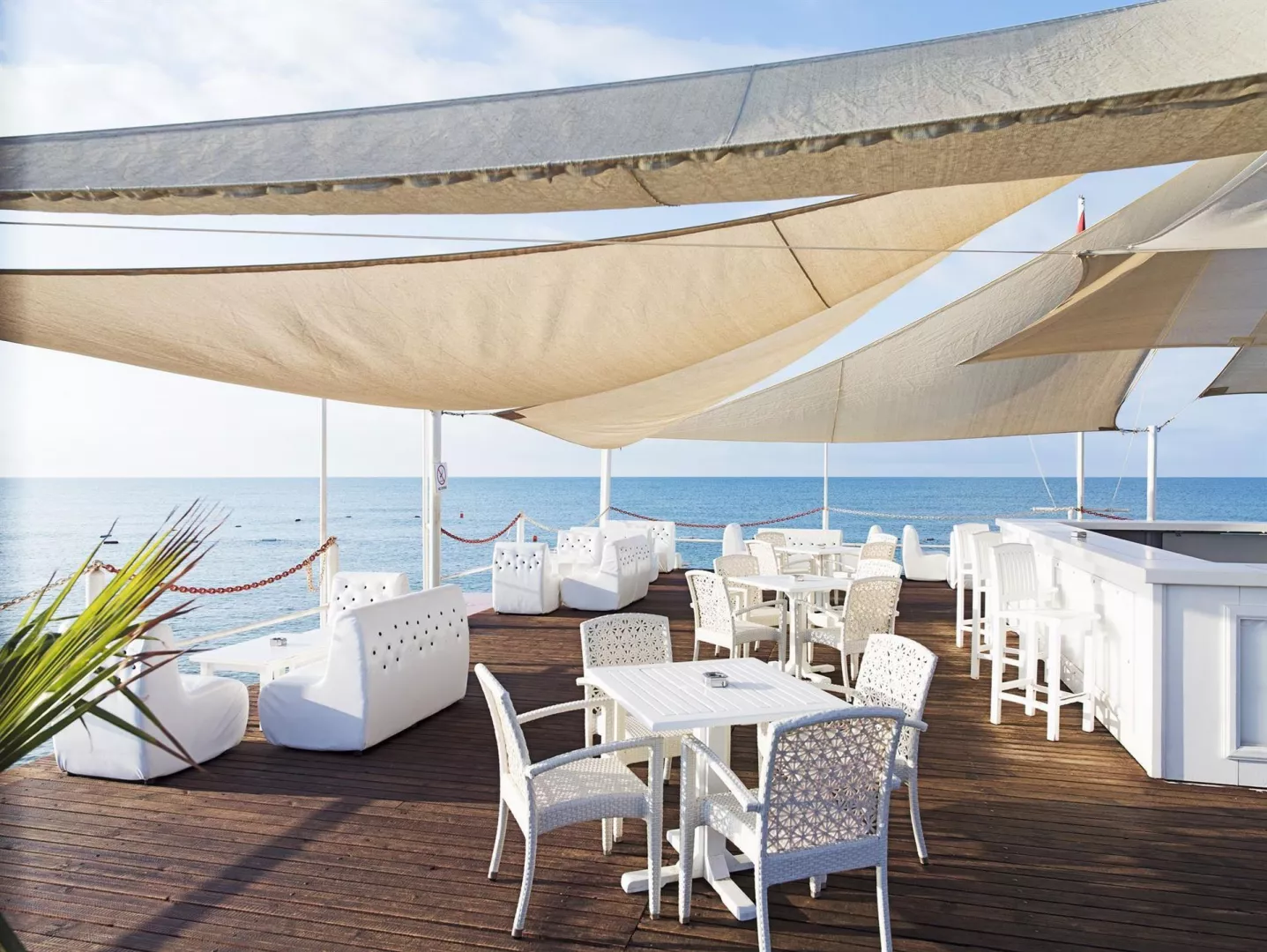 Piesočnato-kamienková pláž priamo pri hoteli poskytuje lehátka, slnečníky a matrace zdarma. Na pláži sa nachádza bar, mólo a zóna iba pre dospelých. Pre deti sú k dispozícii šmykľavky so slanou vodou a ležadlá.