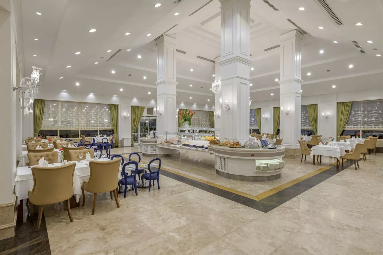 Hotel ponúka Ultra All Inclusive program s 24-hodinovým prístupom k raňajkám, obedom a večeriam formou bufetu. Zahrnuté sú aj občerstvenia a nápoje, vrátane kávy Starbucks a miestnych alkoholických nápojov. Možnosť večere v a la carte reštauráciách je k dispozícii za rezerváciu a príplatok.
