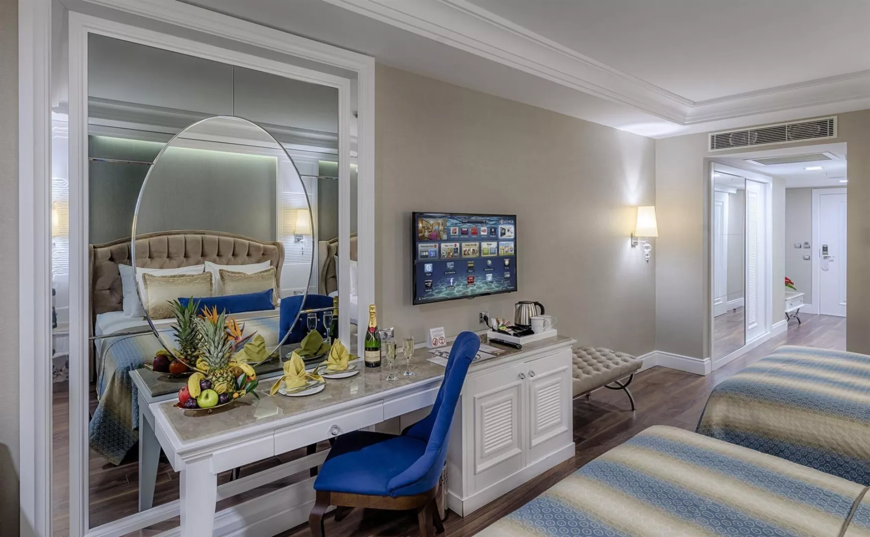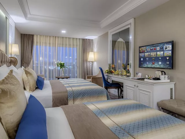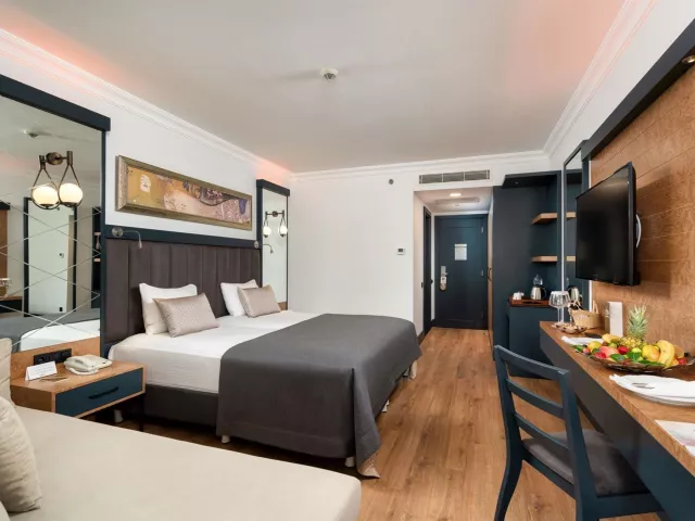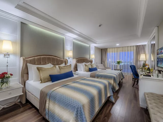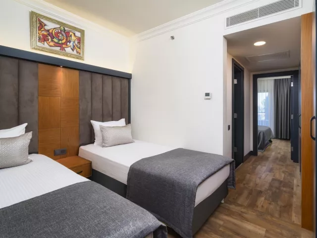 Dobrá škála izieb zahŕňa dvojlôžkové izby s klimatizáciou, minibarom a bezplatným WiFi pripojením. K dispozícii sú aj varianty s bočným výhľadom na more, deluxe izby, rodinné izby s dvoma spálňami a priestranné izby s poschodovými posteľami. Ubytovanie ponúka aj balkóny, župany a papuče.