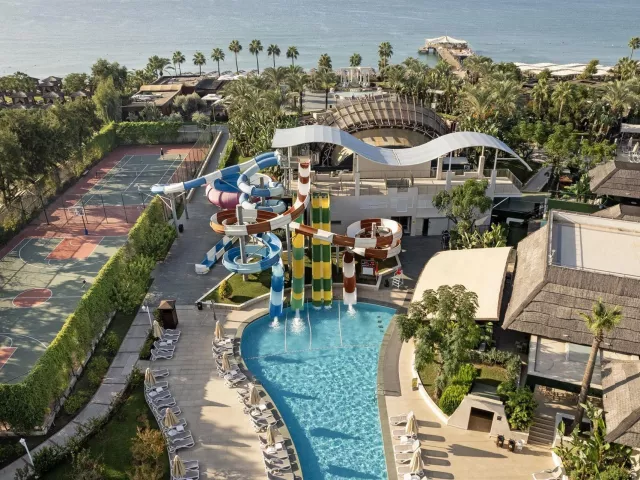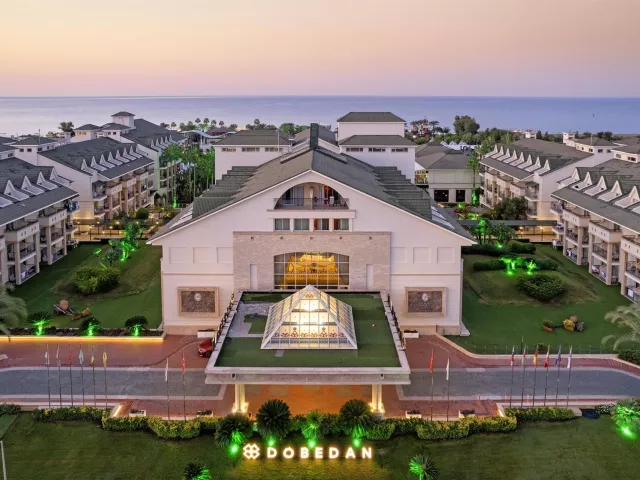 Dobedan Exclusive Hotel & Spa sa nachádza v krásne upravenej záhrade v letovisku Belek-Bogazkent, priamo pri súkromnej piesočnato-okruhliakovej pláži. Hotel má modernú architektúru a pozostáva z niekoľkých prepojených blokov. Nachádza sa tu 724 izieb, 9 vonkajších bazénov, vnútorné bazény a aquapark so šmykľavkami pre dospelých aj deti. Môžete si vychutnať stravovanie v troch hlavných reštauráciách s vonkajším posedením, a vo viacerých baroch. Hotel je ideálny pre rodiny s deťmi, páry aj náročných klientov, ktorí sa túžia cítiť výnimočne.