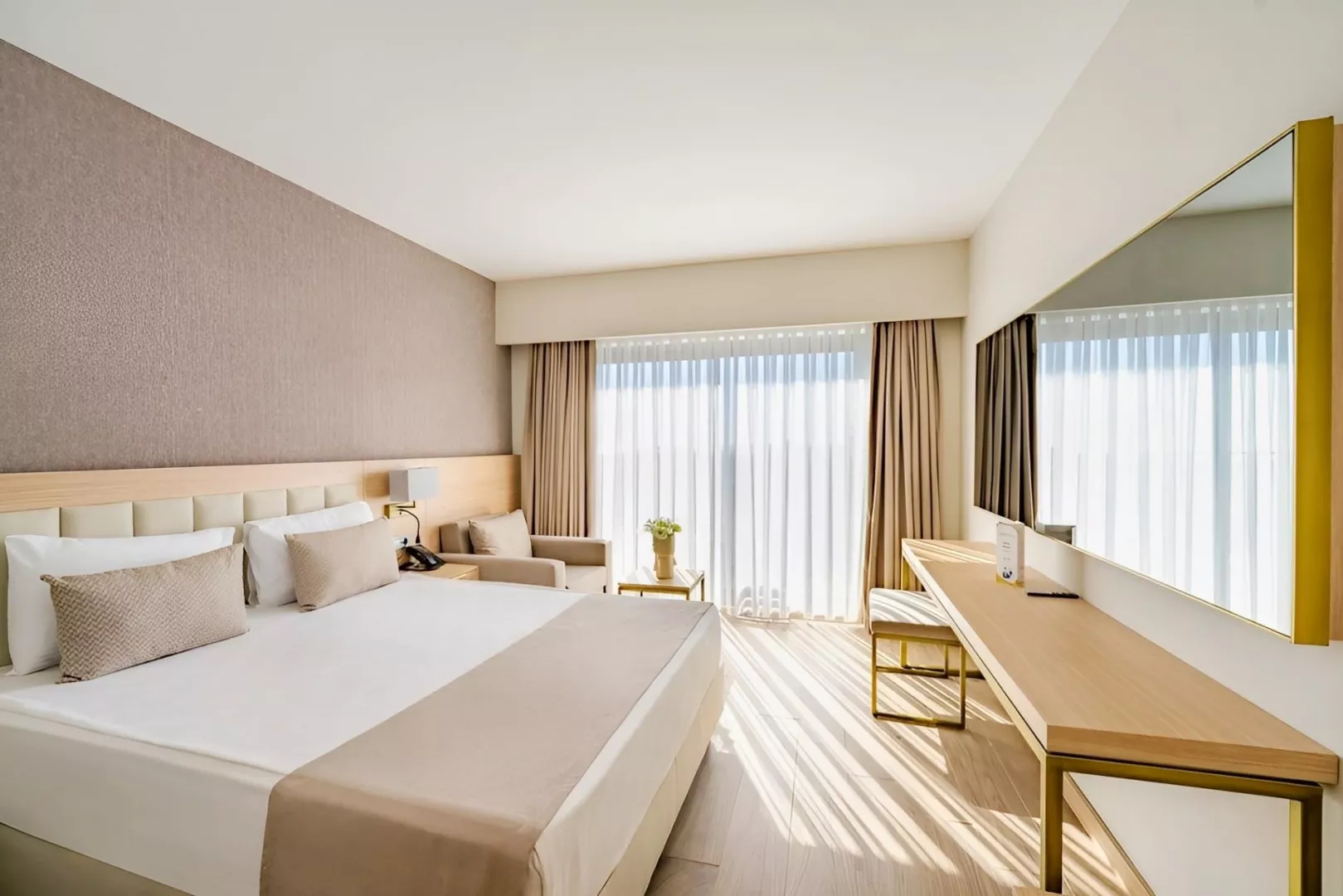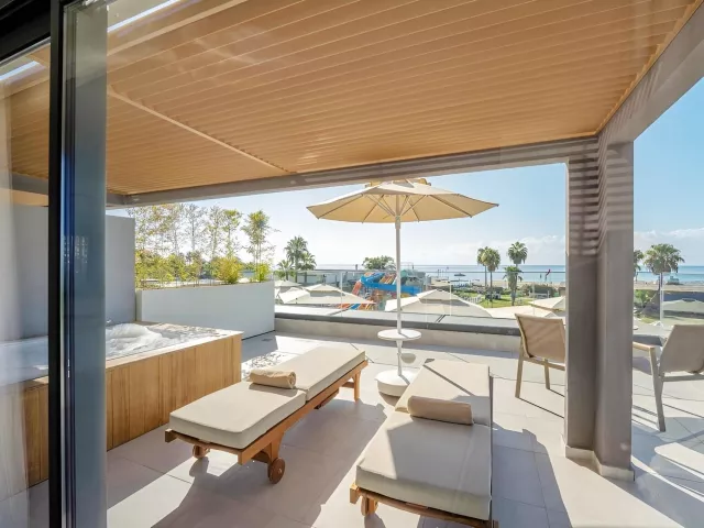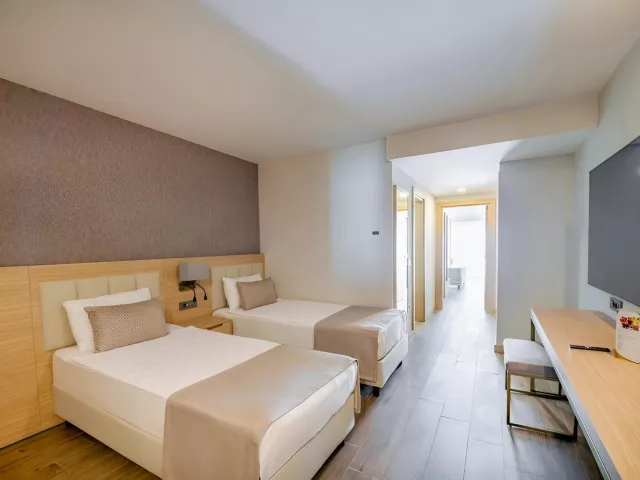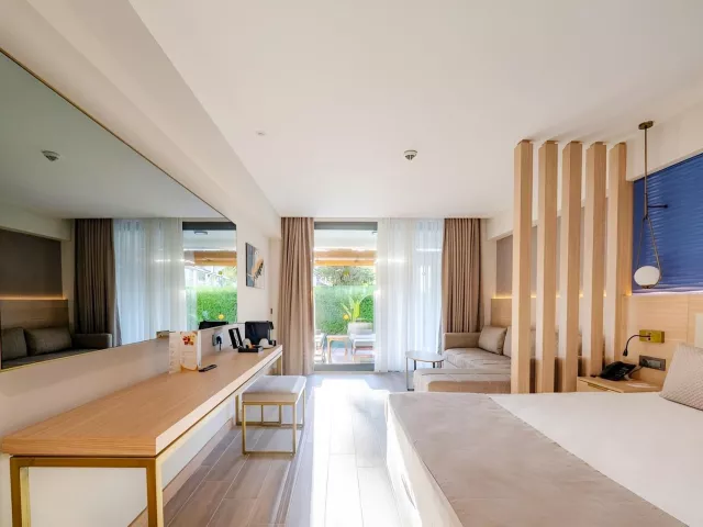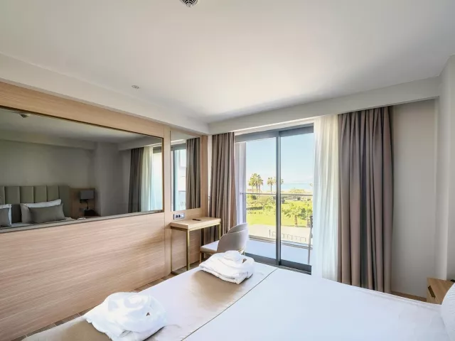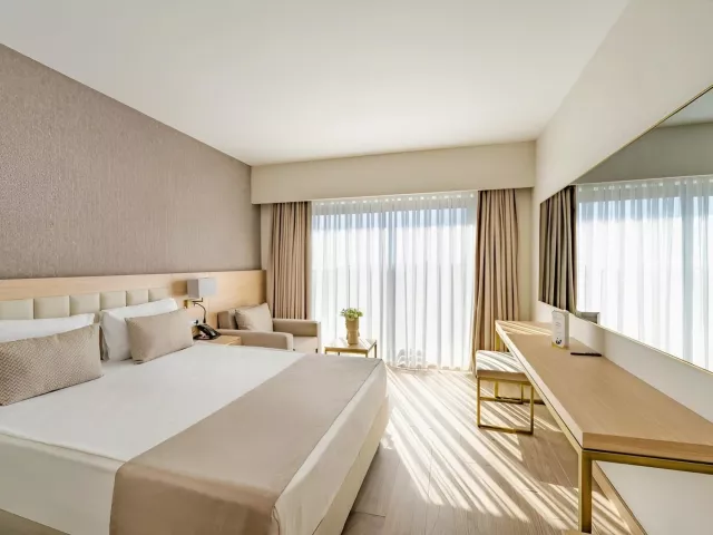Dvojlôžková izba s bočným výhľadom na more obsahuje kúpeľňu/WC (sušič vlasov), individuálnu klimatizáciu, telefón, TV/sat., minibar (denne dopĺňaný), trezor (zadarmo), Wi-Fi (zadarmo), balkón alebo terasu s bočným výhľadom na more. V ponuke sú aj iné typy izieb ako priestranná dvojlôžková izba, izba Swim Up s priamym vstupom do zdieľaného bazéna, rodinná izba Comfort so 2 oddelenými spálňami a suit s obývacou časťou.
