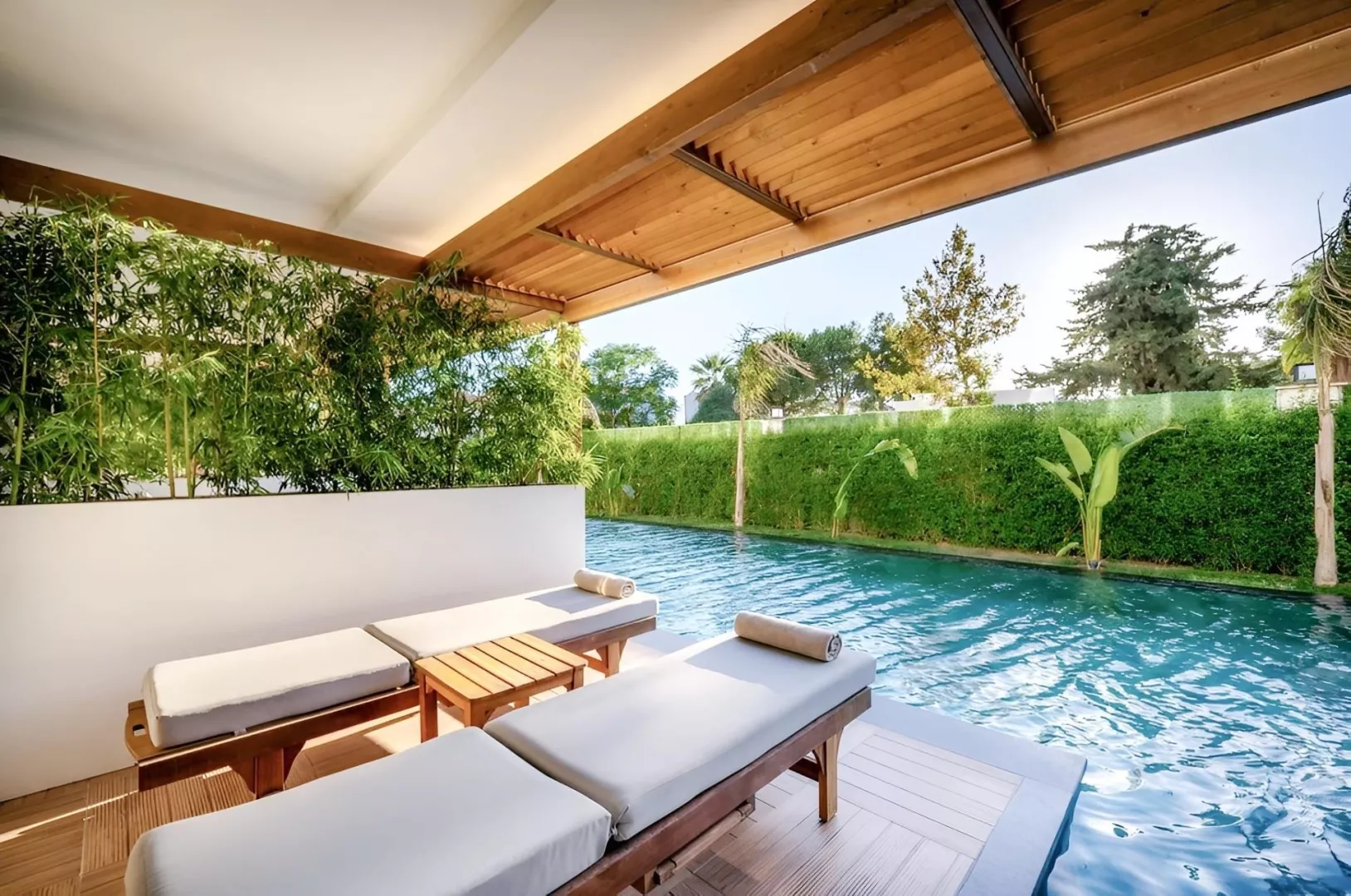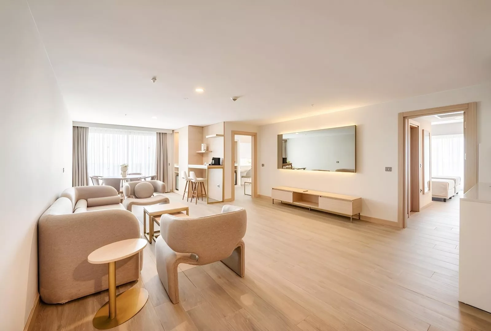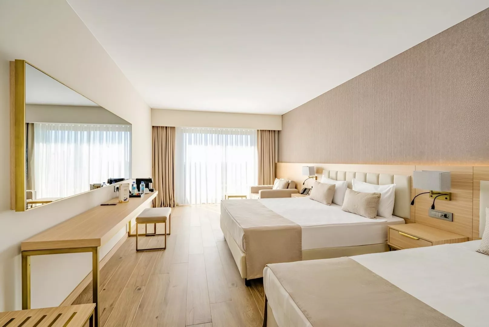 Dvojlôžková izba s bočným výhľadom na more obsahuje kúpeľňu/WC (sušič vlasov), individuálnu klimatizáciu, telefón, TV/sat., minibar (denne dopĺňaný), trezor (zadarmo), Wi-Fi (zadarmo), balkón alebo terasu s bočným výhľadom na more. V ponuke sú aj iné typy izieb ako priestranná dvojlôžková izba, izba Swim Up s priamym vstupom do zdieľaného bazéna, rodinná izba Comfort so 2 oddelenými spálňami a suit s obývacou časťou.