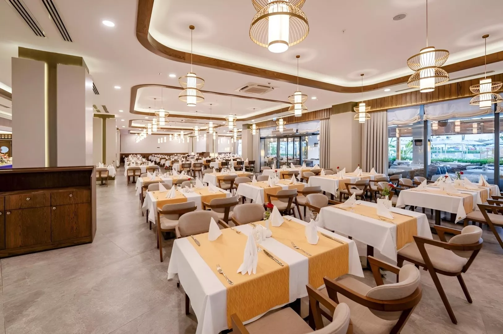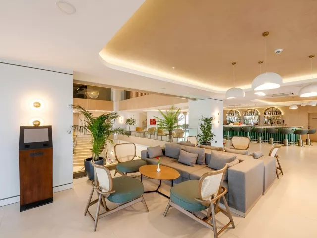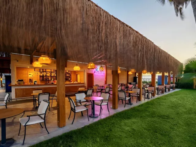 Hotel má 5-poschodovú hlavnú budovu s tromi výťahmi a ponúka vstupnú halu s recepciou, hlavnú reštauráciu, dve A la Carte reštaurácie (jedna je možná raz zadarmo po predbežnej rezervácii), bary a snack bar. Medzi hlavné zariadenia patrí hlavný bazén, bazén so šmykľavkami, detský bazén, ako aj ležadlá a slnečníky pri bazéne, ktoré sú zadarmo. K dispozícii je aj nákupná arkáda, izbový servis a práčovňa (za poplatok), ako aj služby lekára alebo zdravotnej sestry (za poplatok).