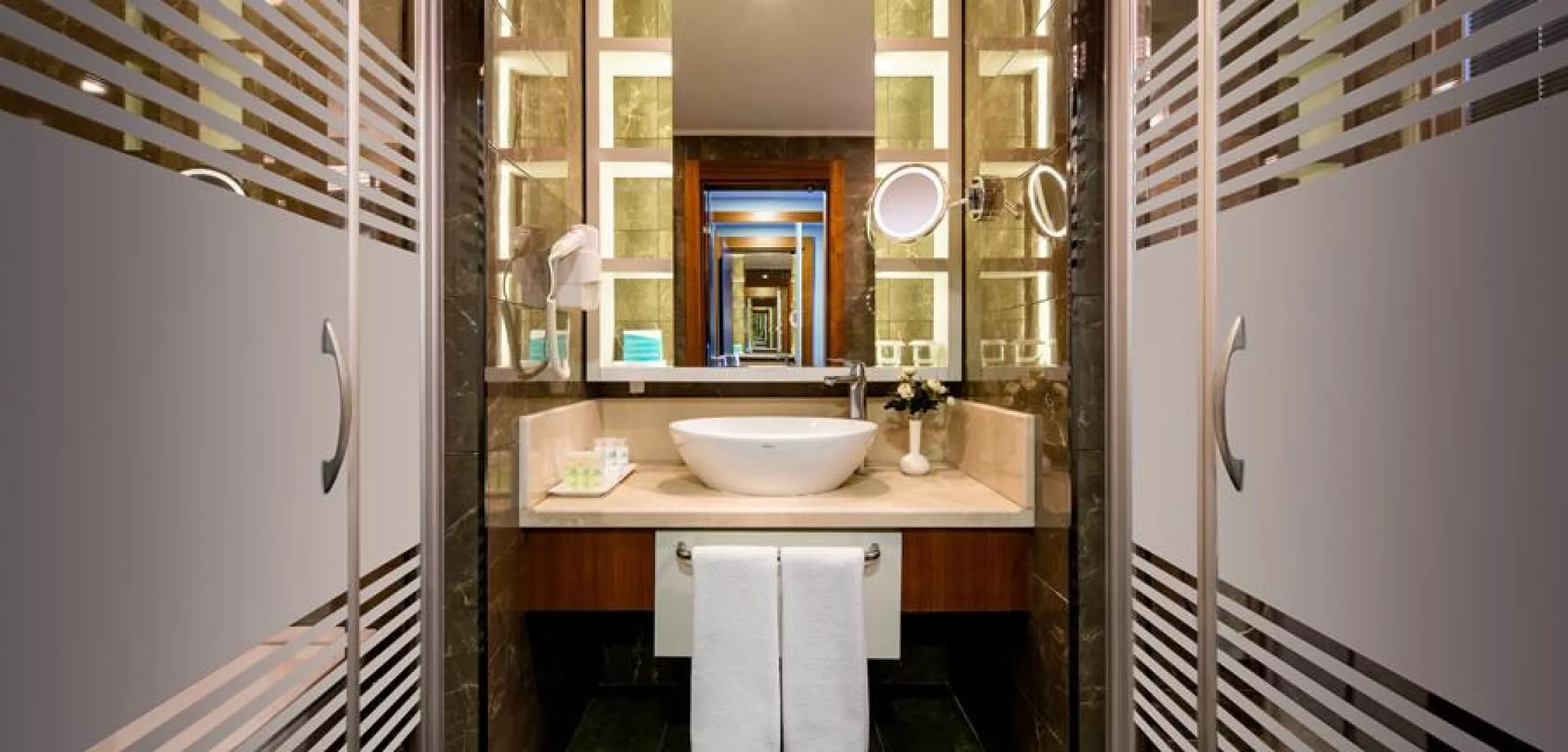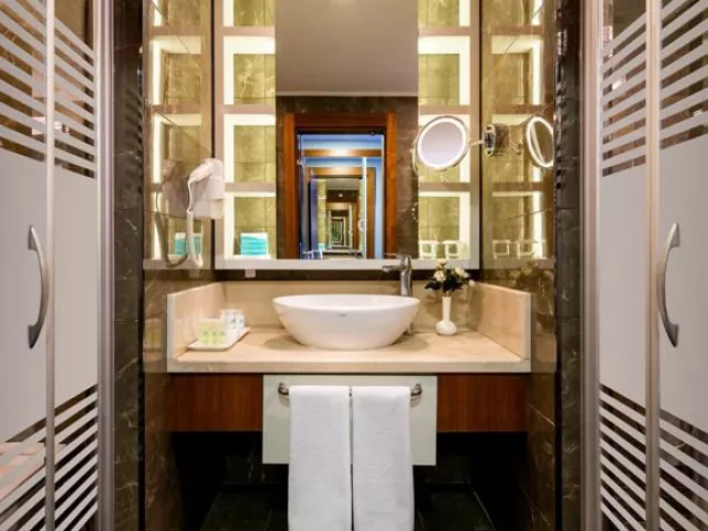 Izby sú moderne vybavené s centrálne ovládanou klimatizáciou, LED TV, minibarom, trezorom, setom na prípravu kávy a čaju a WiFi. K dispozícii sú štandardné izby, rodinné izby so samostatnými spálňami a suity s jacuzzi.