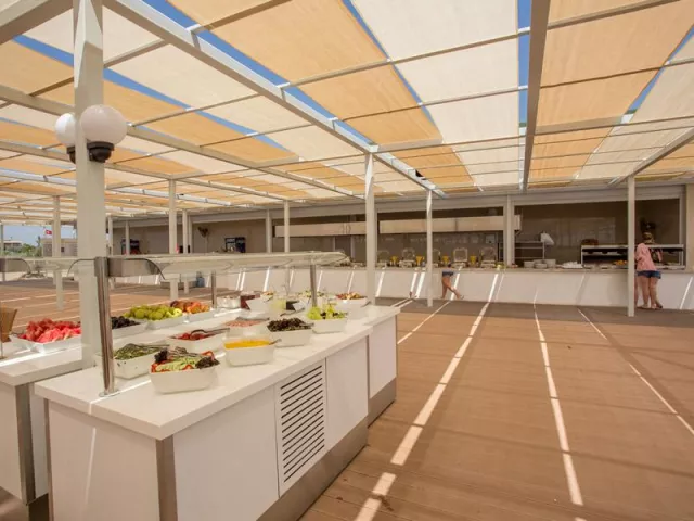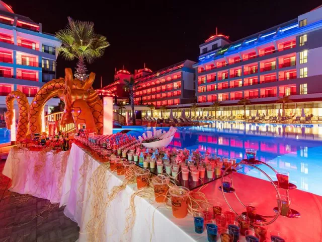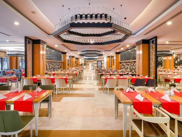 Hotel ponúka stravovanie formou ultra all inclusive s bohatým bufetovým výberom. Hostia môžu ochutnať raňajky, neskoré raňajky, obedy a večere, pričom sú zahrnuté aj rozličné občerstvenia, ovocný bufet a zmrzlina v predpísaných časoch. A'la carte reštaurácie (turecká, talianska, morské plody) sú dostupné po rezervácii.