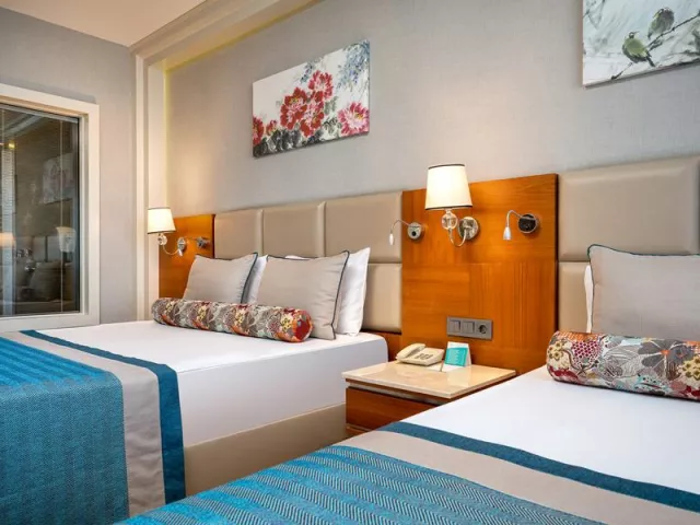 Hotel disponuje 402 izbami v piatich 5-poschodových budovách, recepciou, lobby s WiFi, hlavnou reštauráciou, 3 a'la carte reštauráciami a 5 barami. K dispozícii sú bazény (vrátane bazénu so šmykľavkami), vnútorný vyhrievaný bazén, animačné programy, diskotéka, fitnes, sauna, turecké kúpele a rôzne športové aktivity ako plážový volejbal a stolný tenis.