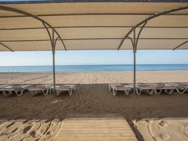 Hotel sa nachádza 400 m od piesočnato-kamienkovej pláže, na ktorú premáva kyvadlová doprava (v letnej sezóne každých 20 minút). Plážový servis vrátane ležadiel, slnečníkov a plážového baru je k dispozícii bez poplatku. Na pláži sú taktiež motorové vodné športy k dispozícii za poplatok.