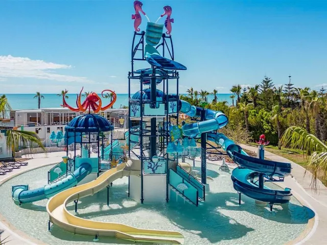 Hotel sa pýši peknou pieskovo-kamienkovou plážou ocenenou Modrou vlajkou s bezplatným plážovým servisom.