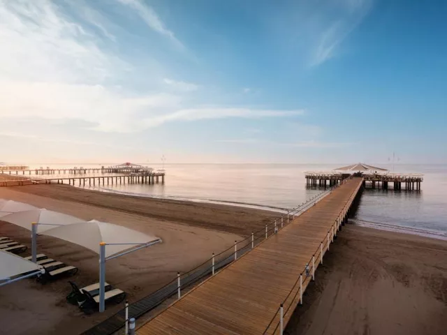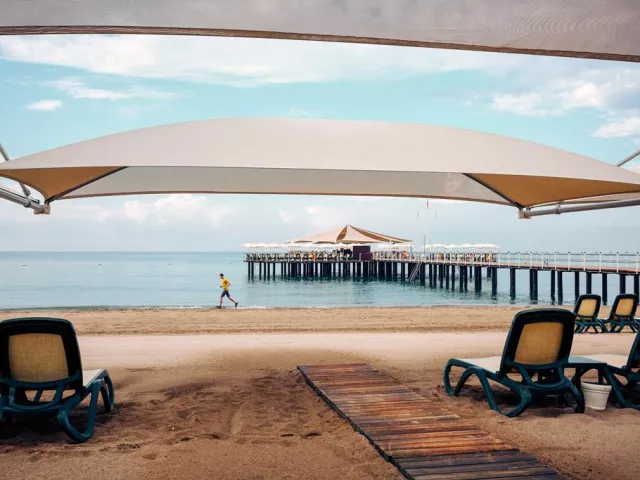 Hotel má priamy prístup na súkromnú piesočnatú pláž dlhú 250 m, kde sú k dispozícii bezplatné ležadlá, slnečníky a plážové osušky. Na pláži sa nachádzajú aj VIP pavilóny za príplatok a niektoré aktivity ako plážový volejbal či zumba.