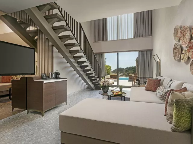 Hotel má celkom 600 izieb, vrátane rôznych typov ako superior izby, rodinné izby a swim up izby s priamym vstupom do bazéna. Každá izba je moderne vybavená, vrátane klimatizácie, minibarom, trezorom a Wi-Fi pripojením.