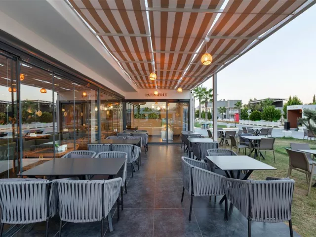 4 reštaurácie, 5 barov, 3 vonkajšie bazény (animačný, adult only a detský),