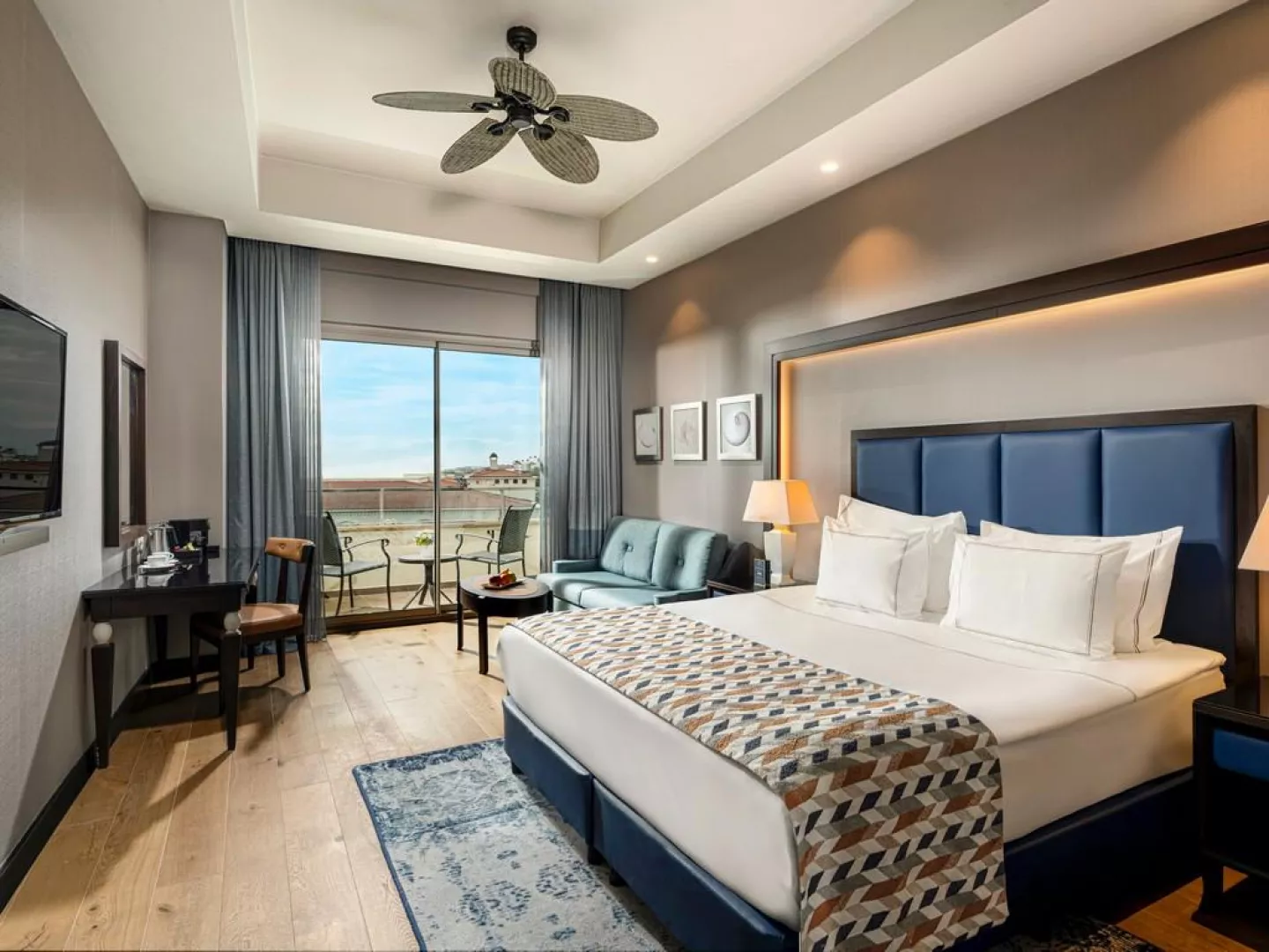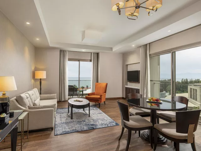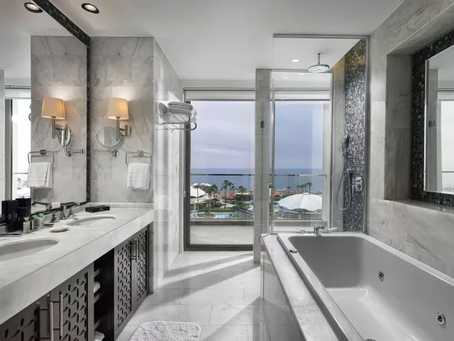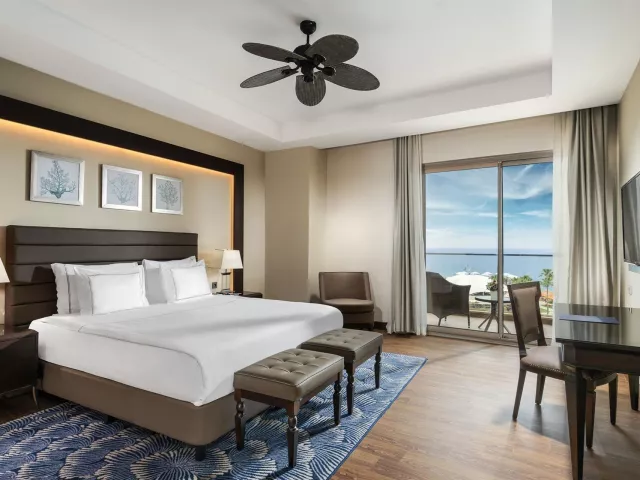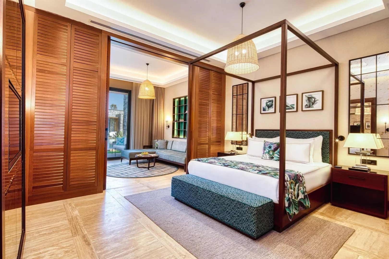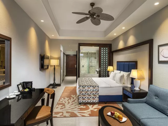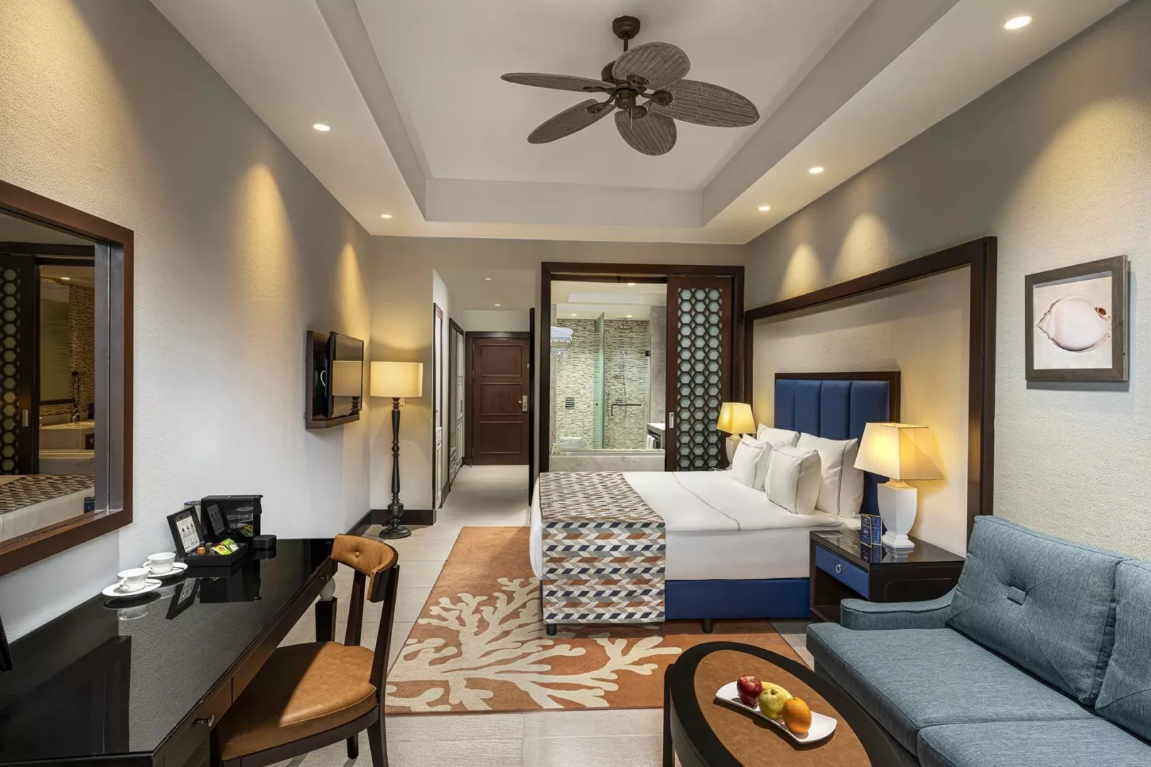 Hotel ponúka širokú škálu izieb vrátane dvojlôžkových izieb Superior s výhľadom na more a priamym vstupom do bazéna, rodinnej suity s dvoma spálňami a podlahovou plochou až 108 m². Každá izba je vybavená klimatizáciou, TV, minibarom, trezorom a WiFi pripojením zdarma.