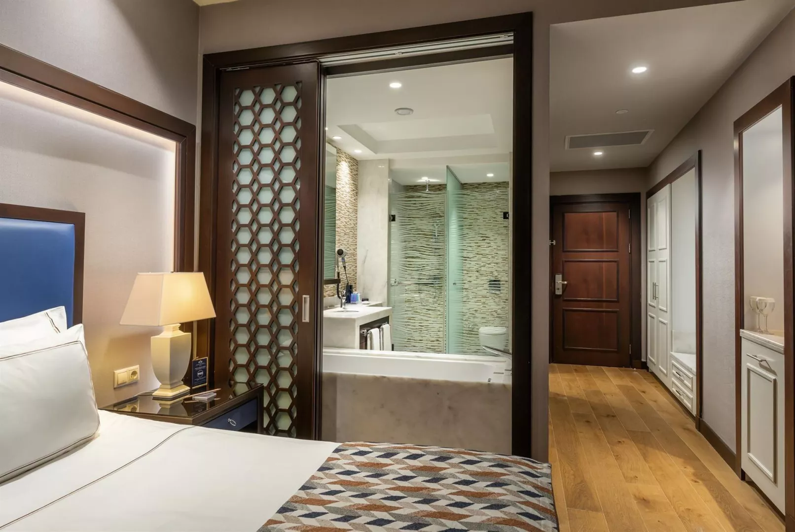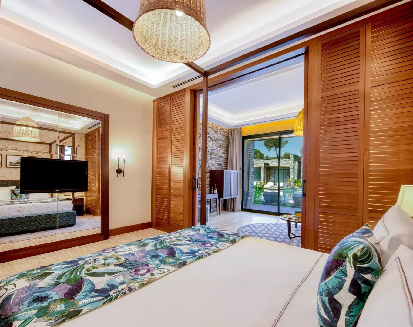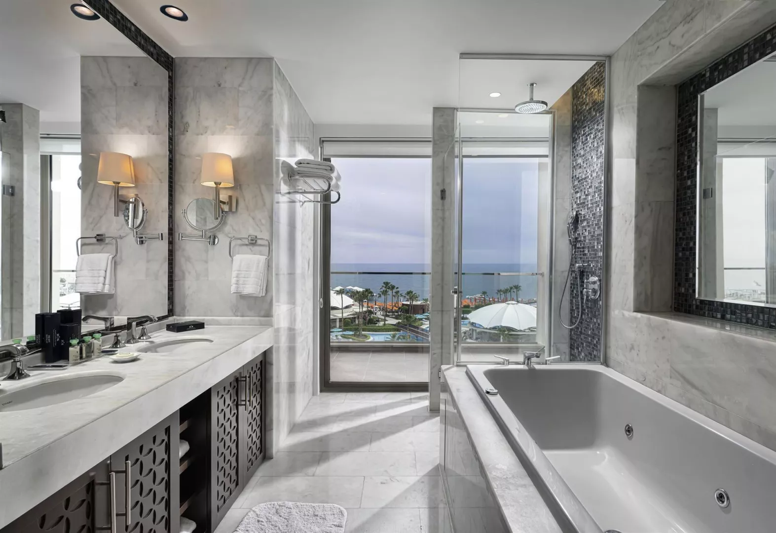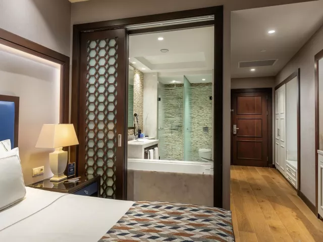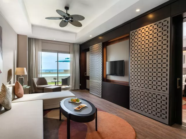 Hotel ponúka širokú škálu izieb vrátane dvojlôžkových izieb Superior s výhľadom na more a priamym vstupom do bazéna, rodinnej suity s dvoma spálňami a podlahovou plochou až 108 m². Každá izba je vybavená klimatizáciou, TV, minibarom, trezorom a WiFi pripojením zdarma.